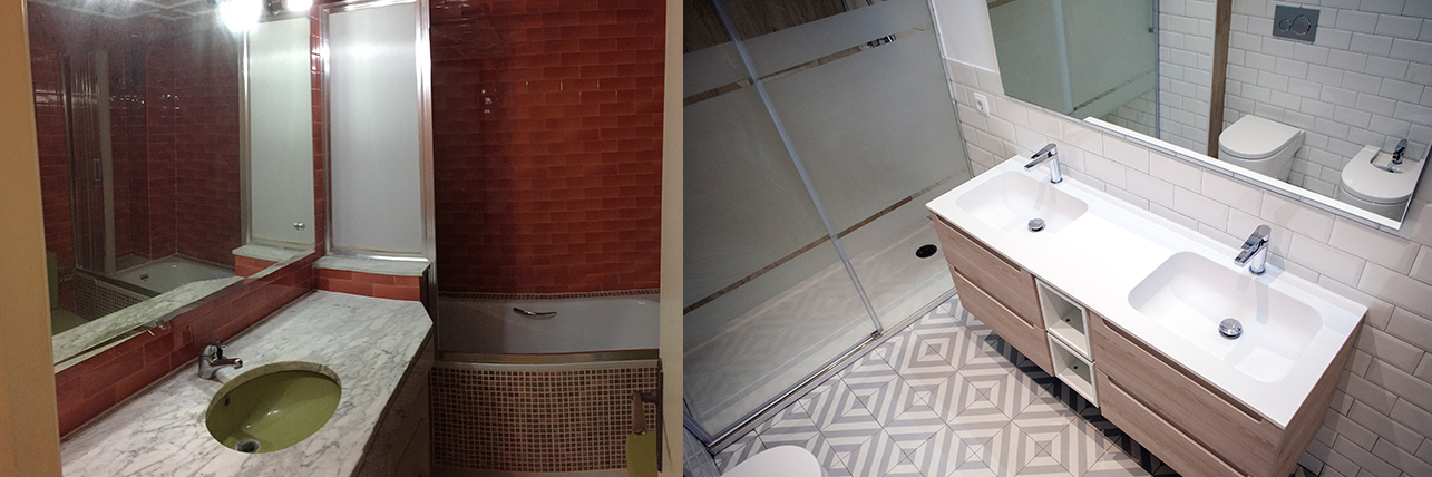 Al igual que en la estancia anterior, el cuarto de baño tenía una imagen algo anticuada, con azulejos marrones o lavabos con acabados en mármol que creaban un ambiente algo oscuro. Sin embargo, tras la reforma de baño esta estancia cuenta con un diseño interior muy contemporáneo y un ambiente fresco que genera mayor sensación de amplitud y luminosidad.
