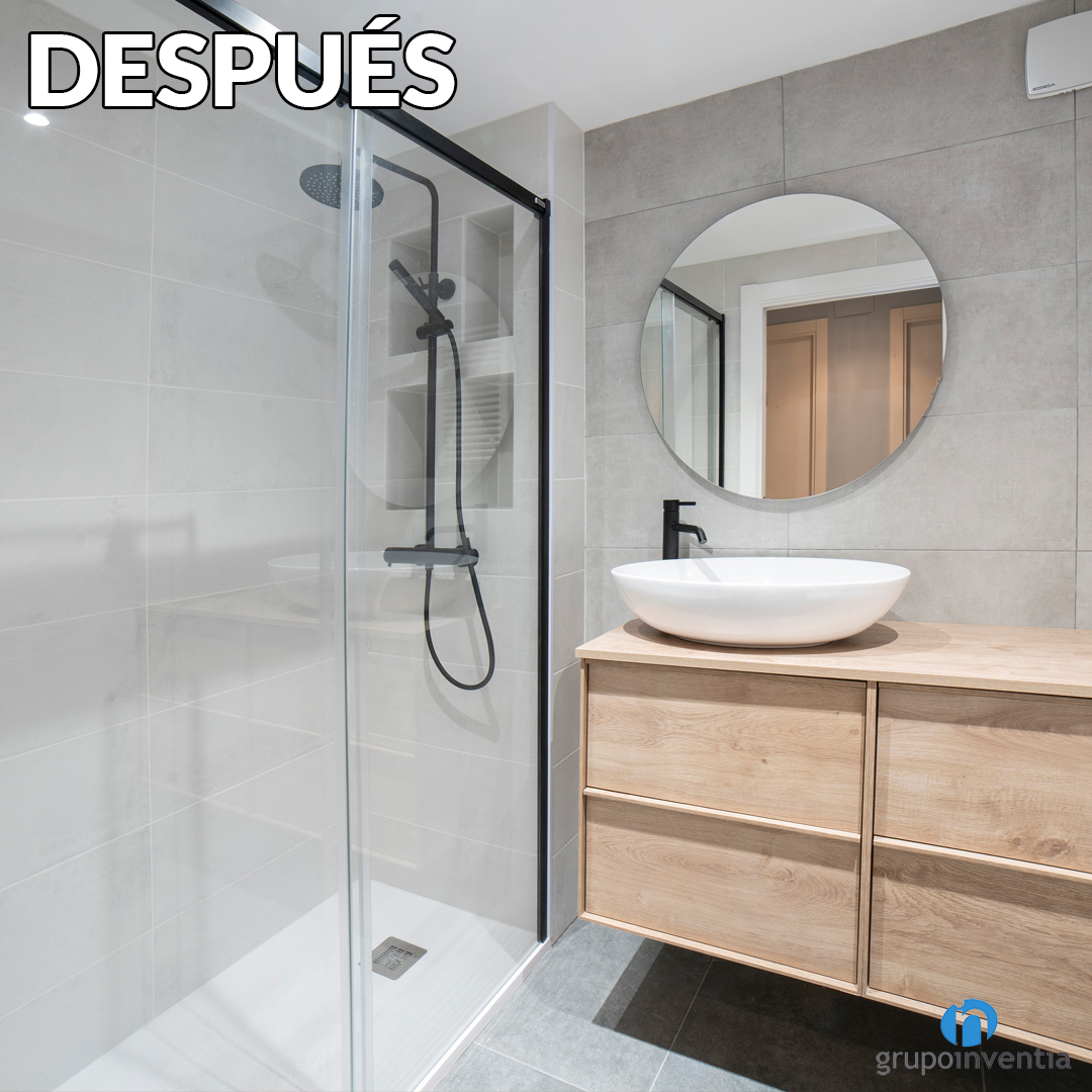 Una de las mejoras tanto prácticas como visuales la encontramos en la zona de aguas. En este aspecto se ha pasado de una bañera a un plato de ducha a ras de suelo. Sin duda es un gran cambio, ya que una ducha se adapta perfectamente a las necesidades diarias y a esos momentos más relajados.