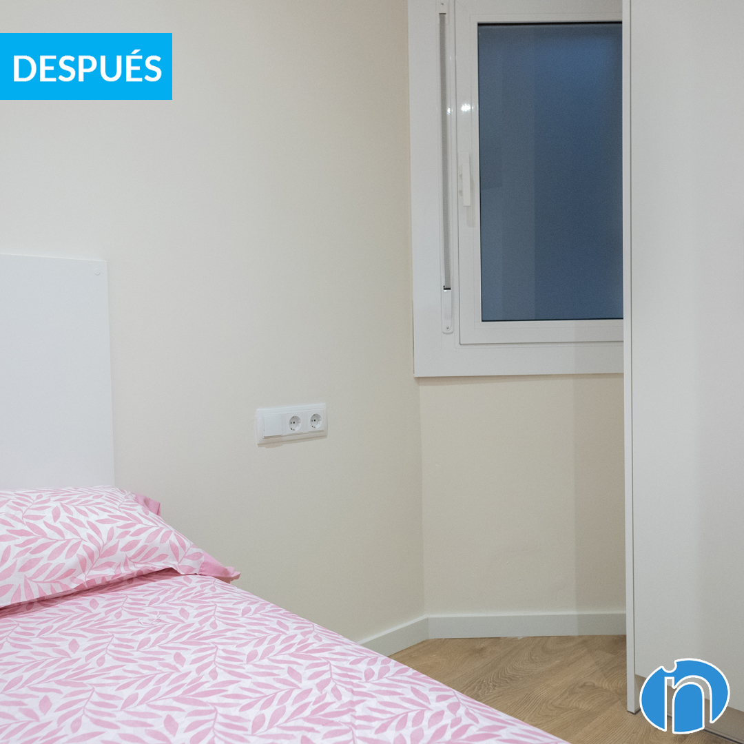 Se han realizado trabajos de pintura para pasar de unas paredes de color blanco y ensuciadas a unas paredes de un suave tono beige. De este modo se genera mucha luminosidad en cada espacio y también un ambiente acogedor. Estos detalles también se potencian con los nuevos pavimentos que se han colocado. En los dormitorios se ha colocado un suelo de parquet laminado. Mientras en la cocina, los baños o el salón se ha escogido un suelo tipo hidráulico.