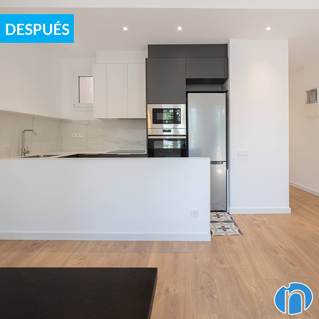 Antes de relatar al detalle los cambios que hemos aplicado en este piso, compartimos un vídeo con el antes y después completo. En nuestro canal de Youtube tenemos una lista dedicada a los antes y después de reformas que hemos terminado. Las exponemos al detalle y en todas las localizaciones, ya que trabajamos tanto en Barcelona ciudad como en municipios de las cercanías.