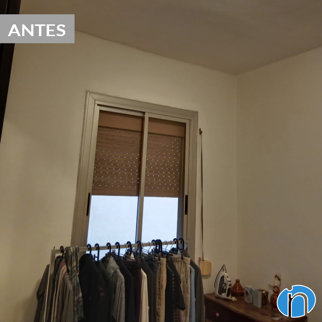 Otra novedad nos lleva al pavimento que hemos cambiado en todo el piso. Hemos cambiado el suelo de baldosas original por un suelo de parquet en tonos medios de madera. Además de las características mencionadas, la nueva tarima de parquet genera calidez. Con todas estas mejoras hemos conseguido transformar un piso con muchas carencias en un verdadero hogar.
