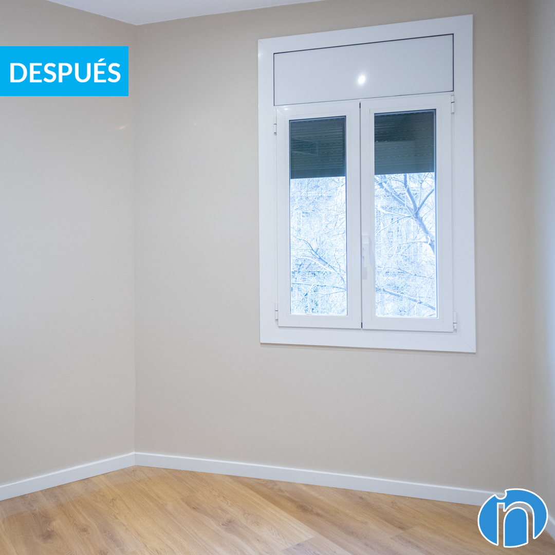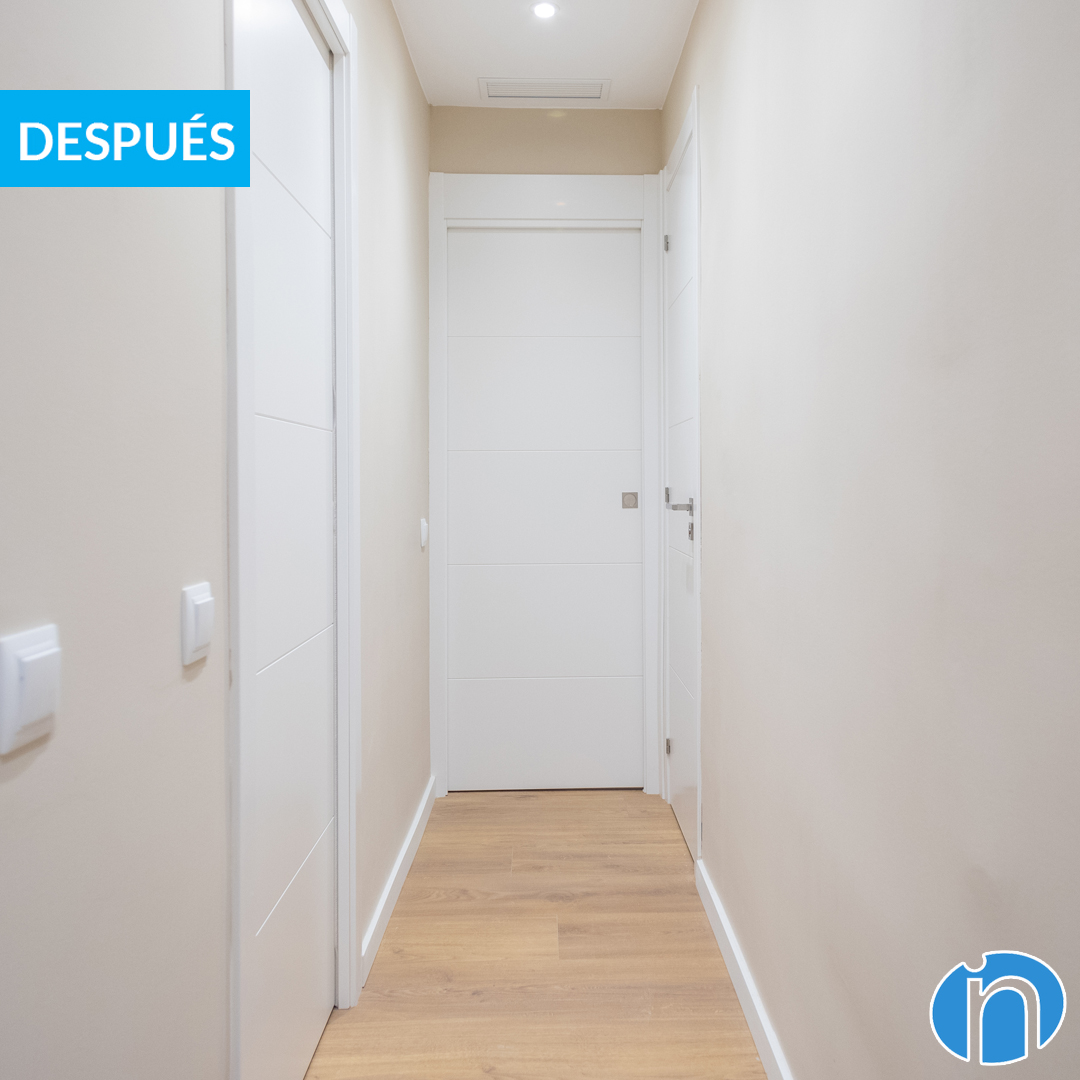 Ahora todos los espacios de la vivienda se presentan en una imagen moderna y actual. Todas las paredes se han pintado con un suave tono de beige para generar espacios cálidos. No queda rastro de las paredes descuidadas de color blanco que nos encontramos. Del mismo modo todas las puertas y ventanas se han cambiado. La nuevas puertas son de color blanco y las ventanas han pasado de ser de madera a aluminio.