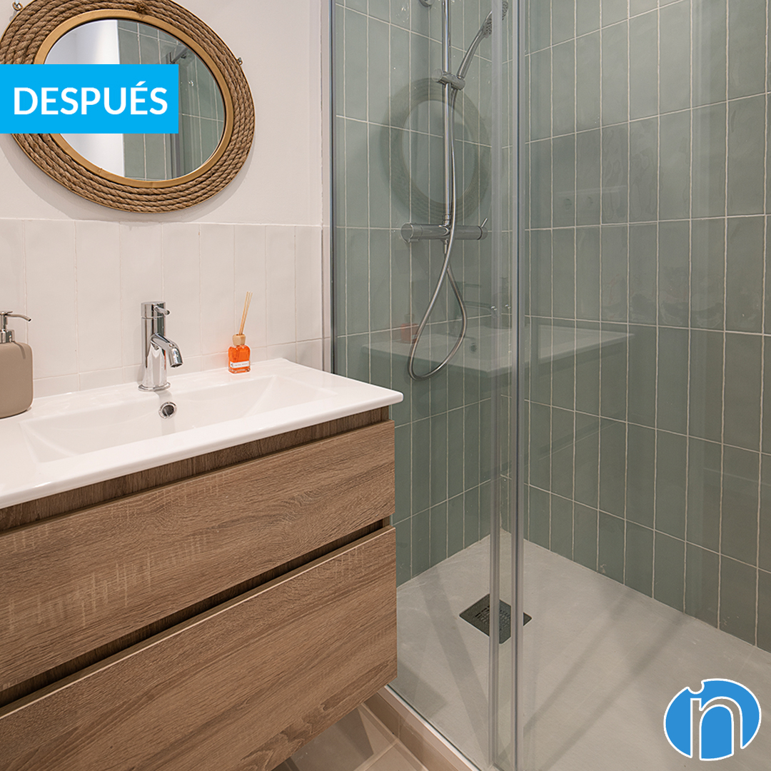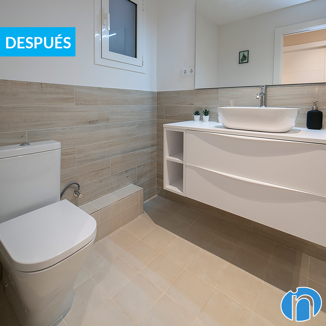 Los dos cuartos de baño de la vivienda también se han renovado por completo. En este caso el cambio es muy notorio y han pasado espacios de aseo desactualizados a dos cuartos de baño modernos tanto en la imagen como en el equipamiento. Ahora están listos para ofrecer las mejores prestaciones en todo momento y se complementan como espacios de higiene.