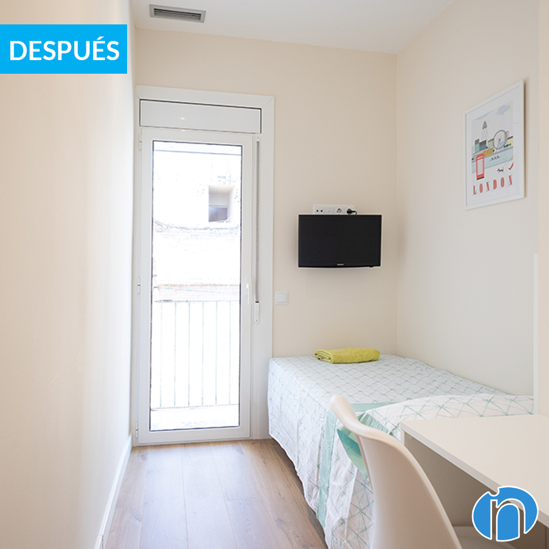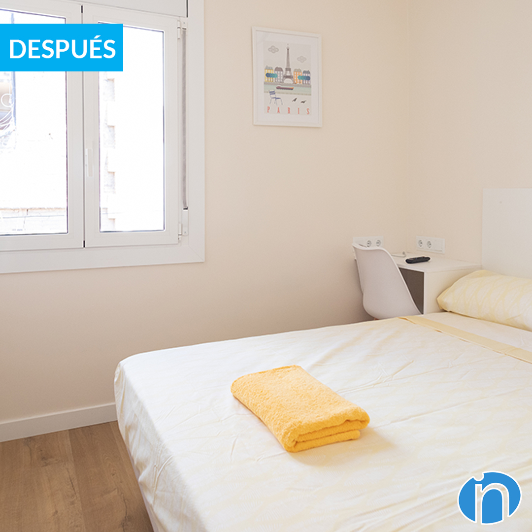 Ahora cada dormitorio cuenta con una cama, un armario y una zona de trabajo. En líneas generales se han conseguido habitaciones funcionales y acogedoras. El descanso y la comodidad están asegurados, además de un orden correcto gracias a la capacidad de almacenaje. Cada dormitorio cuenta con una ventana de aluminio de doble cristal.