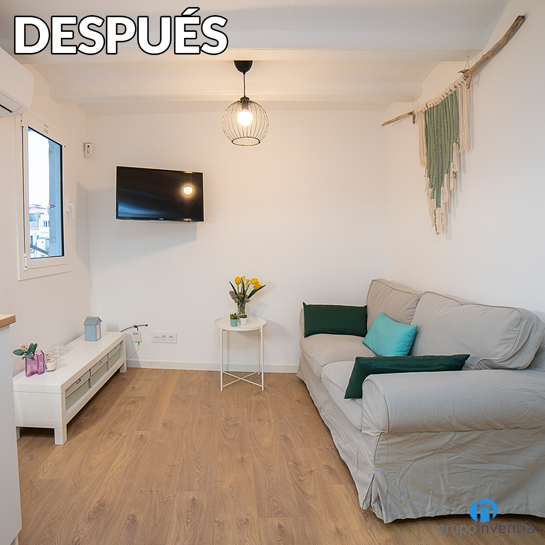 D’aquesta manera compararem abans i després d’aquesta nova reforma integral a Barcelona. És un habitatge que ha passat de mostrar-se en clar desús a ser una llar altament funcional. Després del pas de Grupo Inventia tots els espais donen el millor de si i disposa de nova imatge i equipament.