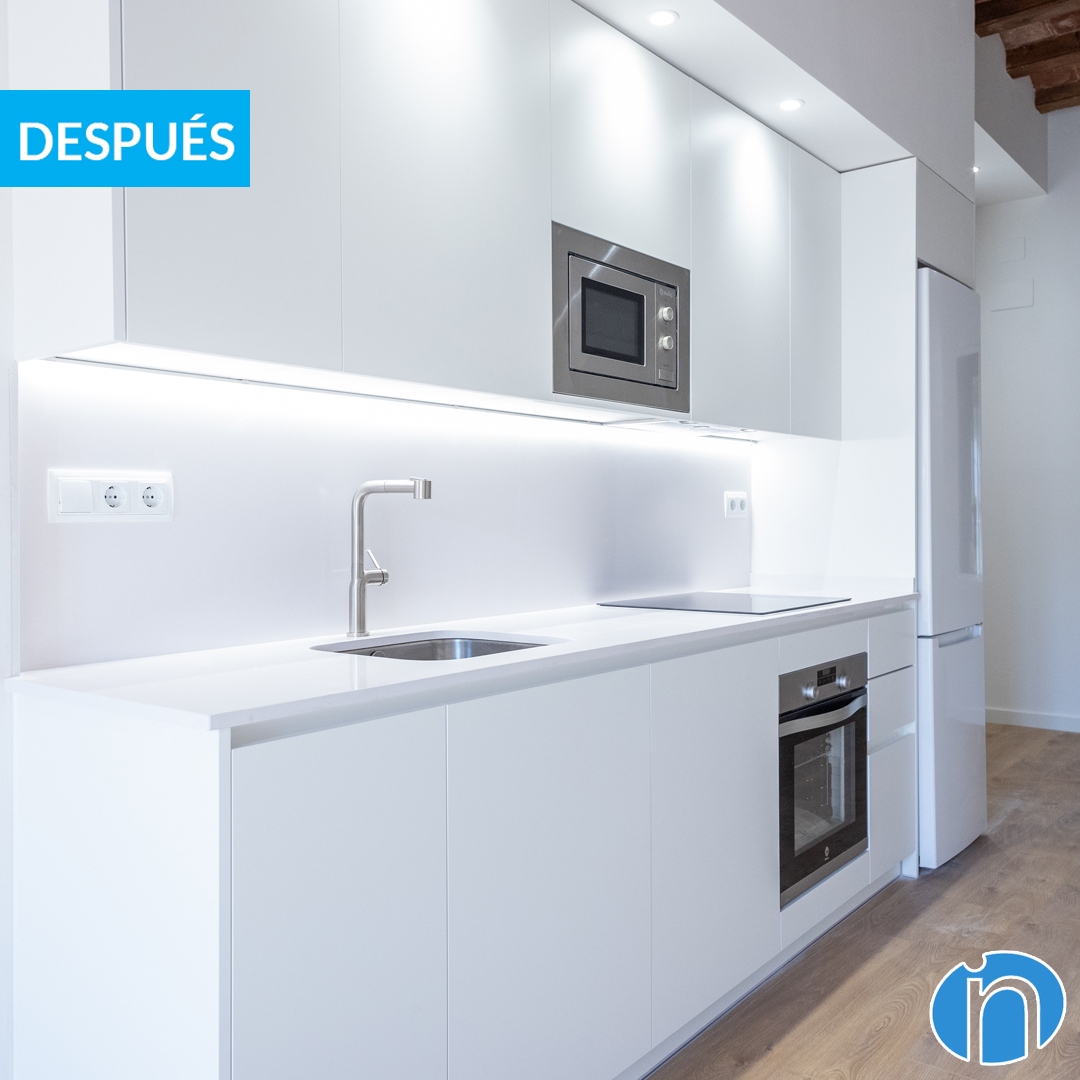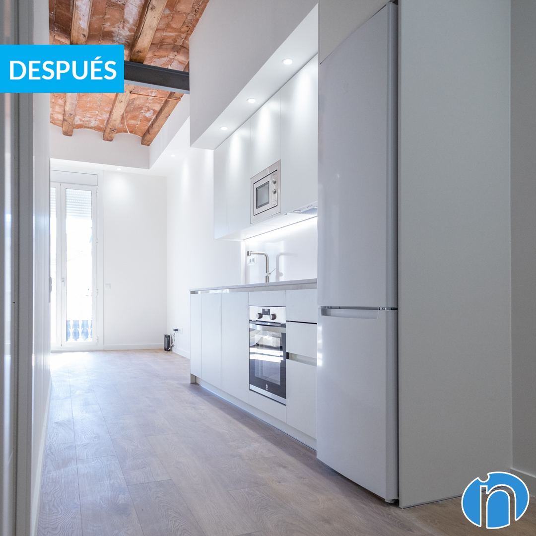 Aquest abans i després de reforma a Barcelona s’han renovat molts aspectes que tenen a veure amb el bon funcionament d’una llar. Ara espais com la cuina i la cambra de bany estan equipats per complet. D’altra banda, la sala d’estar o els dormitoris es presenten amb un disseny modern i molt acollidor.