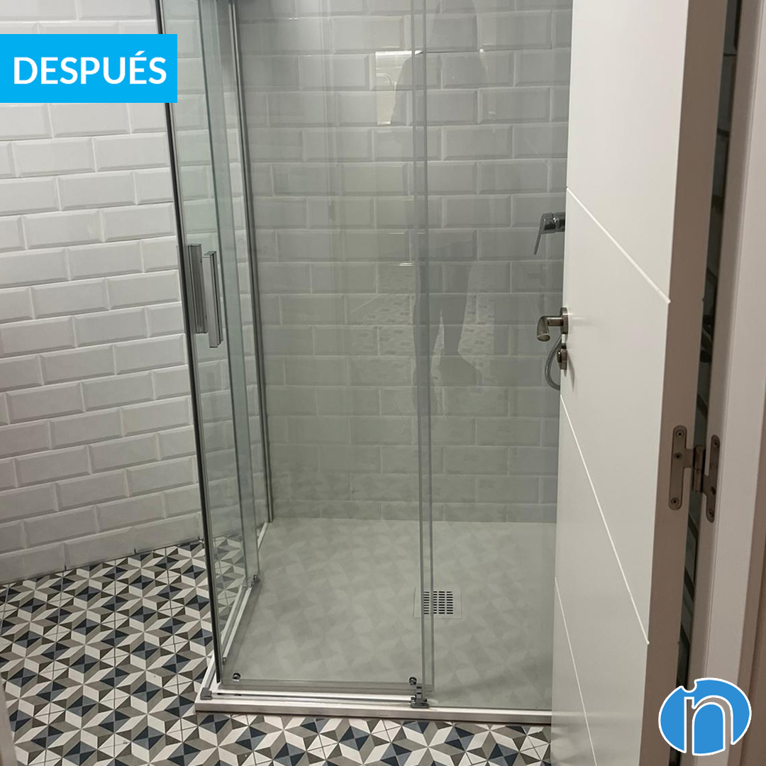 Pel que fa al disseny del bany, s’ha aplicat una decoració més actual i d’acord amb el disseny contemporani de tot el pis. S’han retirat les rajoles originals i hem enrajolat les parets amb rajoles tipus metro de color blanc. De la mateixa manera que ens encarreguem de substituir el terra de gres anterior per un terra tipus hidràulic que aporta molta personalitat.