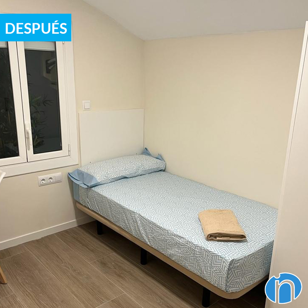 S’ha passat d’un color blanc antiquat a un to beix que genera més calidesa i sensació de benestar. Si comparem l’abans i després dels dormitoris es pot apreciar molt bé. A més, ens hem encarregat de moblar-los i ara tenen un llit, un armari i una zona de treball.