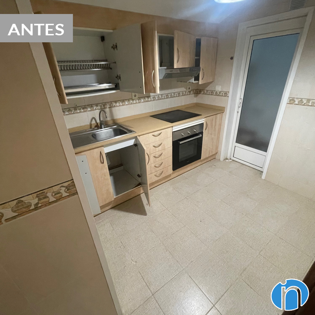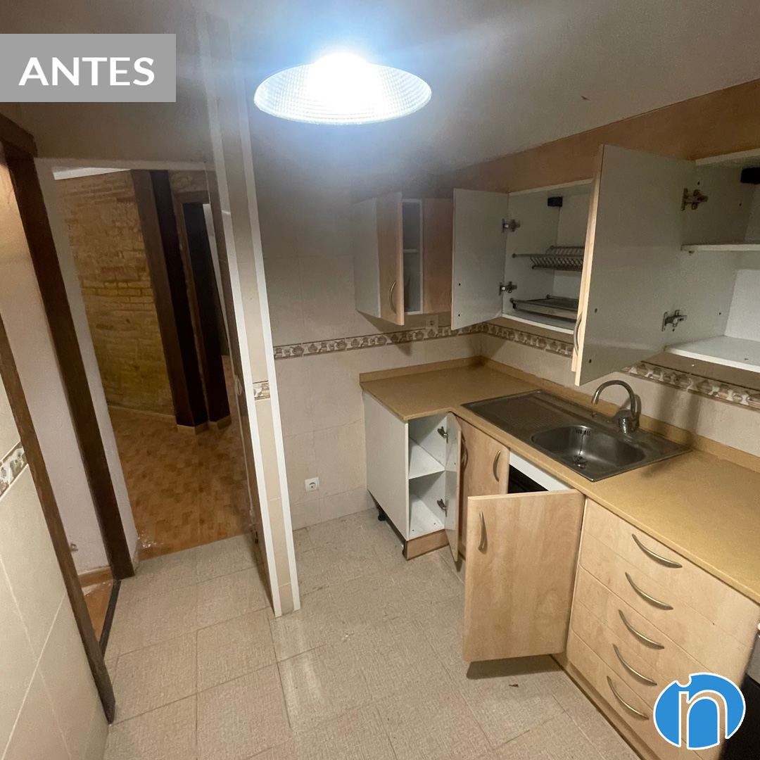 La reforma de cuina és un dels grans canvis en aquesta reforma a Barcelona. Ara la cuina s’ubica en un lloc diferent de l’original, ja que ha passat a un espai obert al costat del menjador. El que era la cuina original ara és un dormitori acollidor. Com que és una cuina oberta s’ha distribuït de forma lineal.