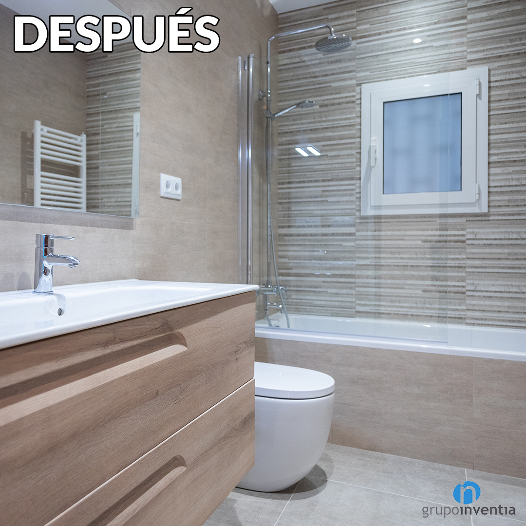 Ara compta amb nou lavabo, inodor i plat de dutxa. Tot això amb les parets enrajolades amb rajoles blancs i blaus. El detall d’aquesta reforma de bany és que s’ha mantingut el terra original de l’antiga habitació que ara ocupa. Com hem esmentat en Grupo Inventia ens hem encarregat de restaurar-perquè duri molts anys més.