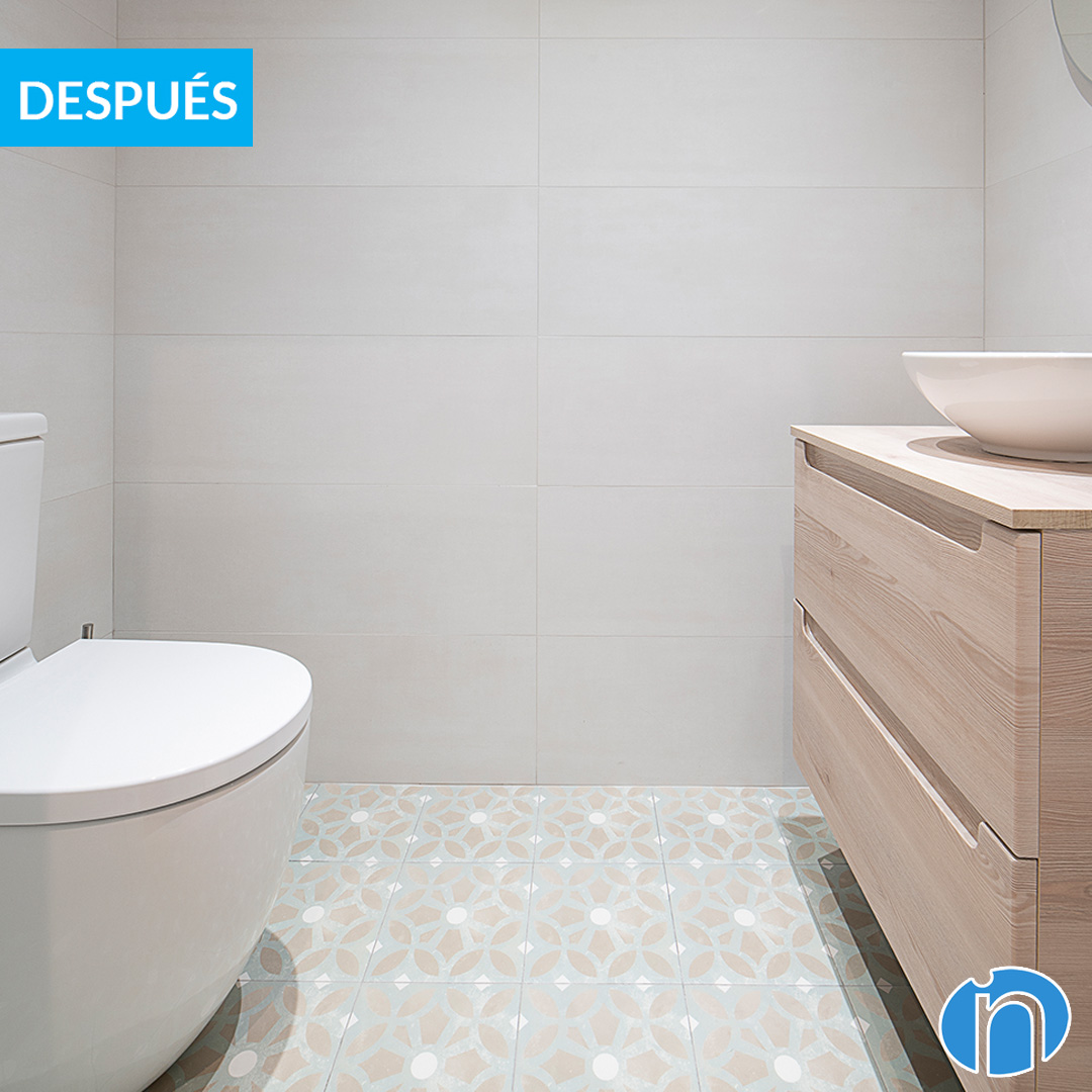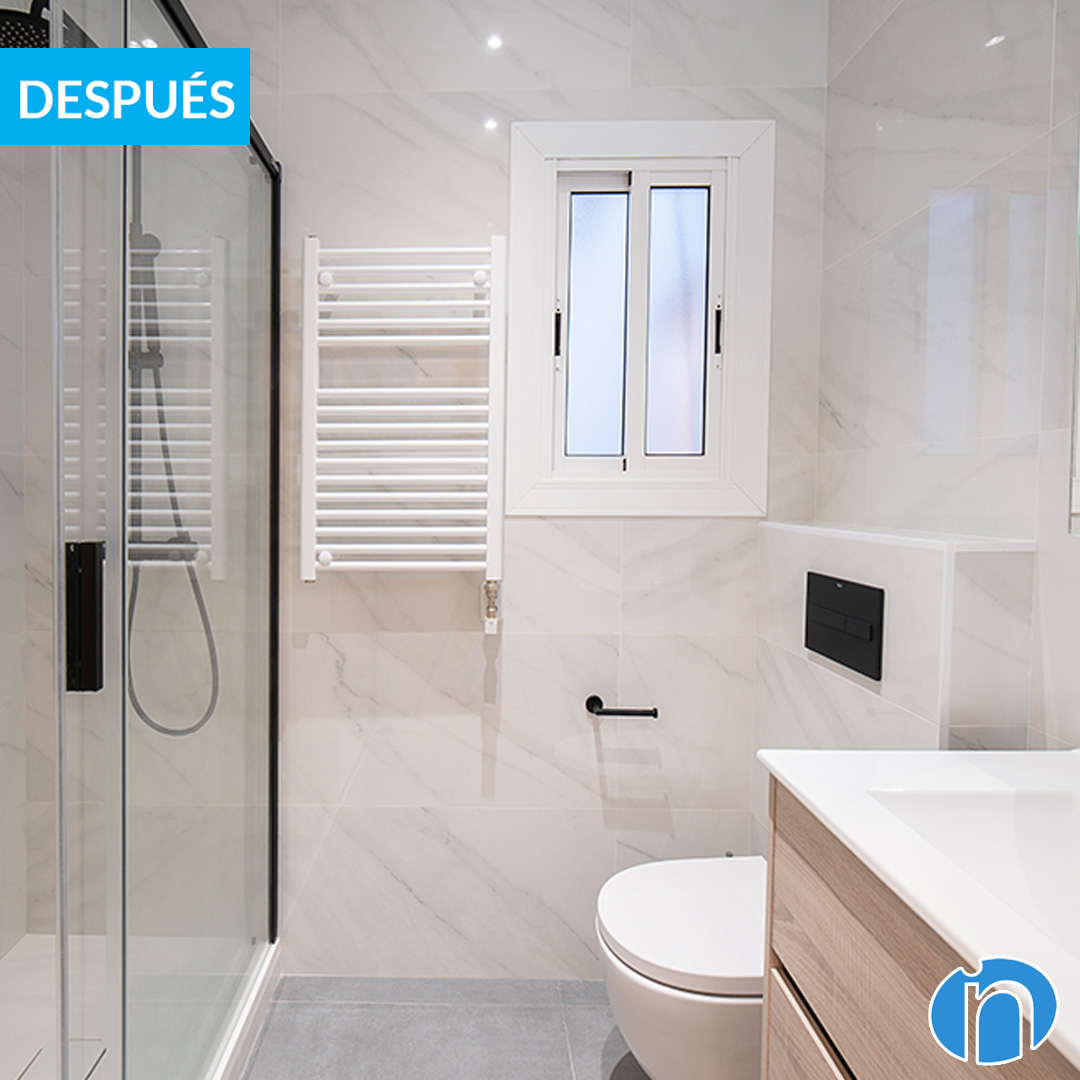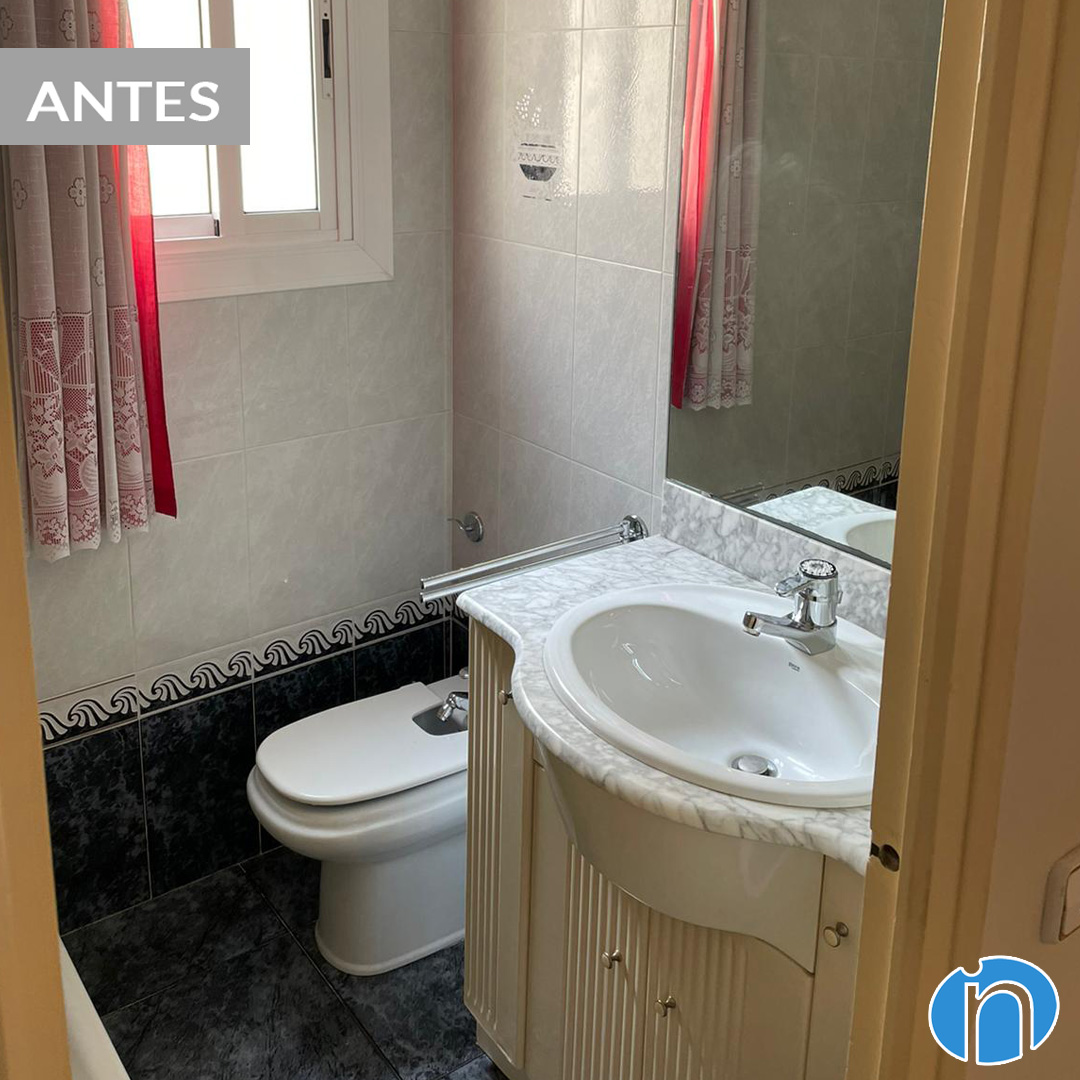 Les cambres de bany es mantenen a la ubicació original, encara que són totalment diferents. Ens hem encarregat de modernitzar la imatge i també d’instal·lar un equipament sanitari funcional. En el cas de lavabo compta amb un nou lavabo amb moble d’emmagatzematge incorporat i amb un vàter.