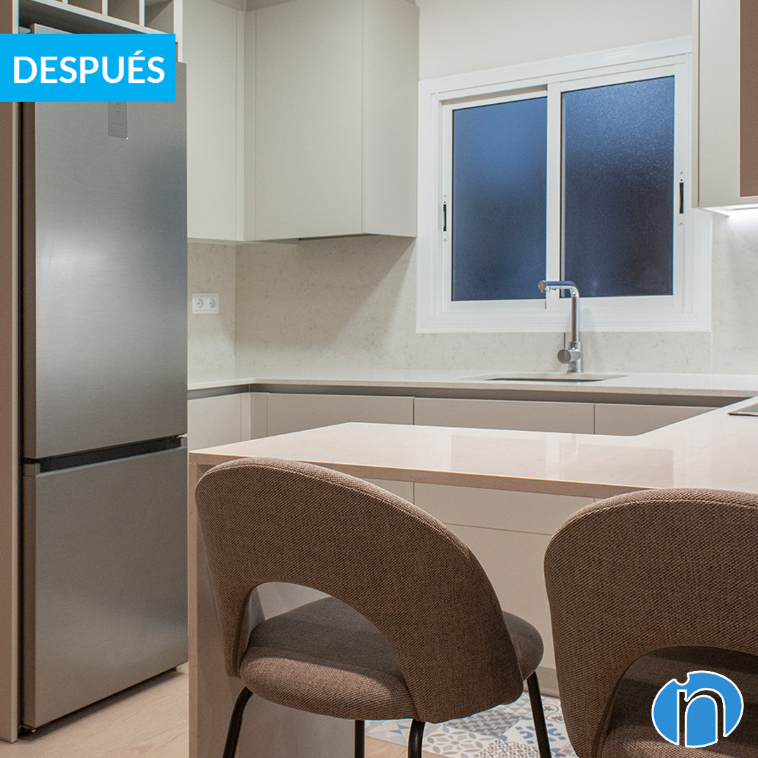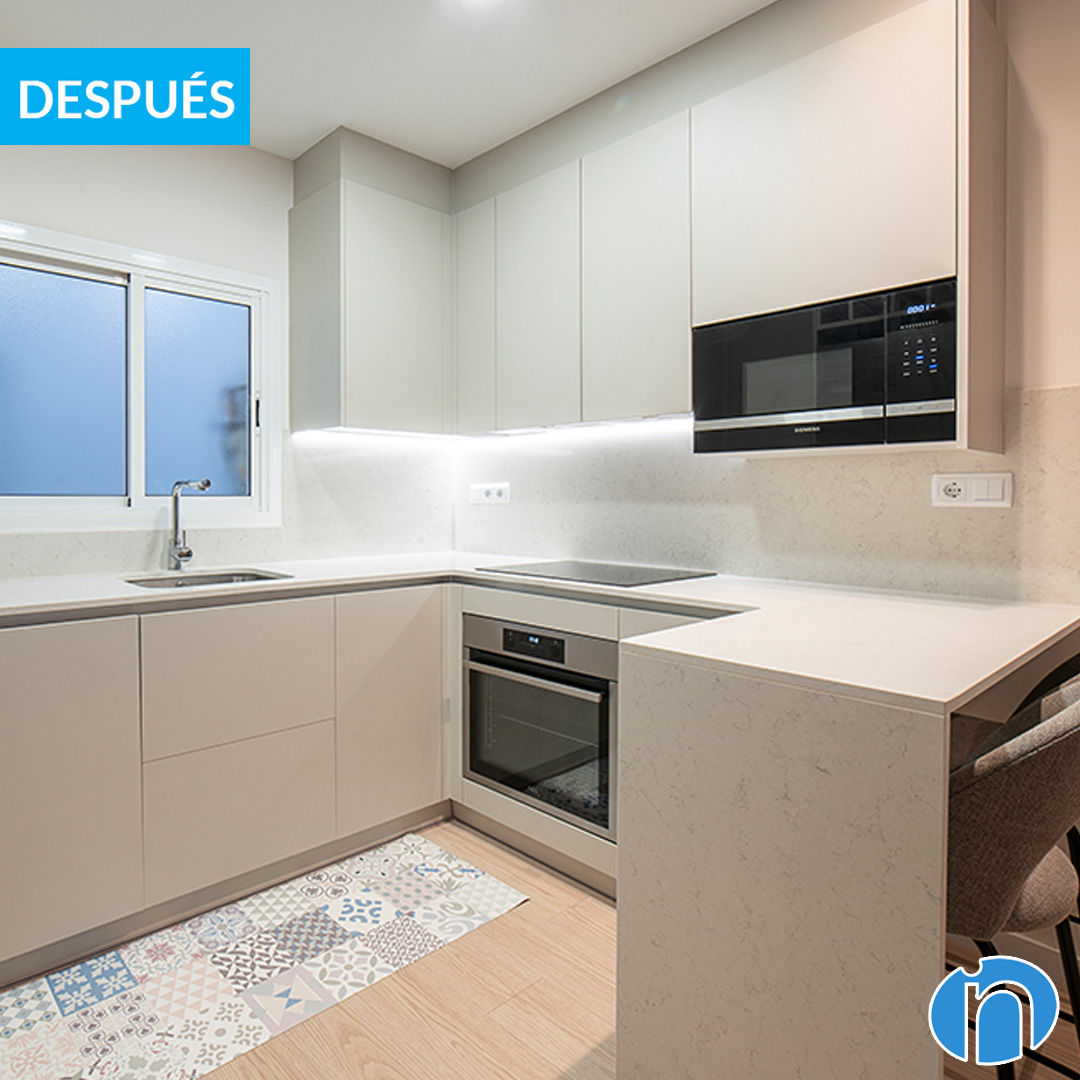 Ara disposa de nevera, forn i microones, tot nou i marques contrastades. També s’ha retirat el mobiliari original i se n’ha col·locat un de molt més modern i d’acord amb la nova imatge. El moble de cuina és de color blanc i els panells dels calaixos i armaris són llisos. Un altre dels avantatges d´aquesta reforma de cuina a Barcelona és que s´ha ampliat la capacitat d´emmagatzematge.