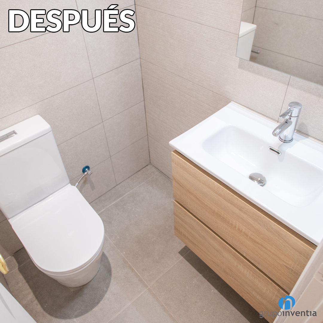 Al seu torn l’equipament sanitari s’ha renovat per noves peces modernes i de gran qualitat. Tant el bany principal com en la neteja compten amb un lavabo amb moble d’emmagatzematge incorporat d’acabat en fusta i un vàter. La cambra de bany compta amb l’extra de la zona d’aigües. Es tracta d’un plat de dutxa ampli i amb uns tancaments de mampares corredisses.