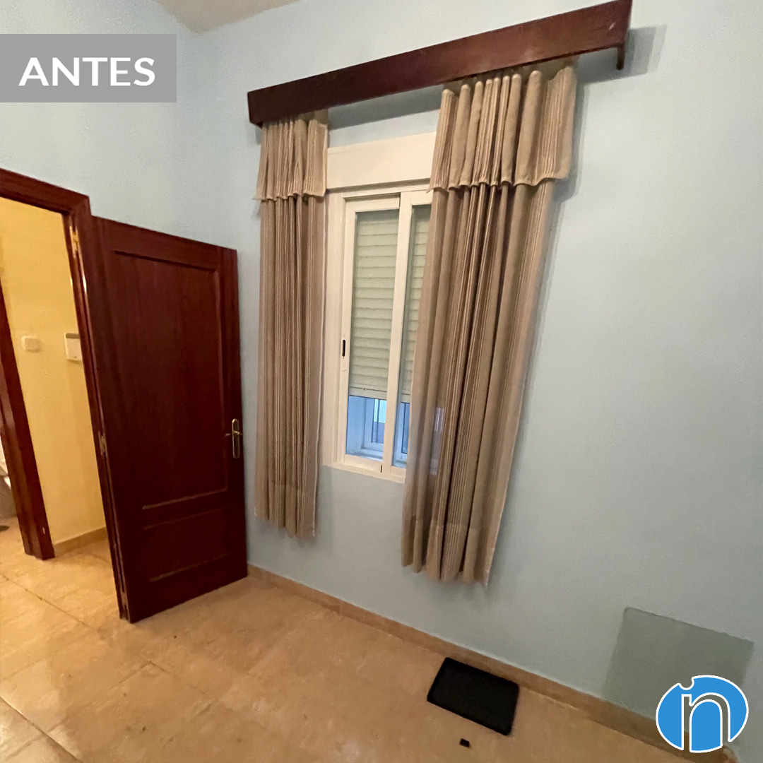 A l’abans i després d’aquesta reforma integral també hem de parlar del canvi d’imatge interior amb els nostres interioristes a Madrid. L’estat original era molt antiquat i requeria un rentat de cara urgent. Parets amb humitats, terres diferents a cada espai o portes de fusta desfasades. Ara hem realitzat treballs de pintura i hem aplicat una imatge homogènia a tot el pis.