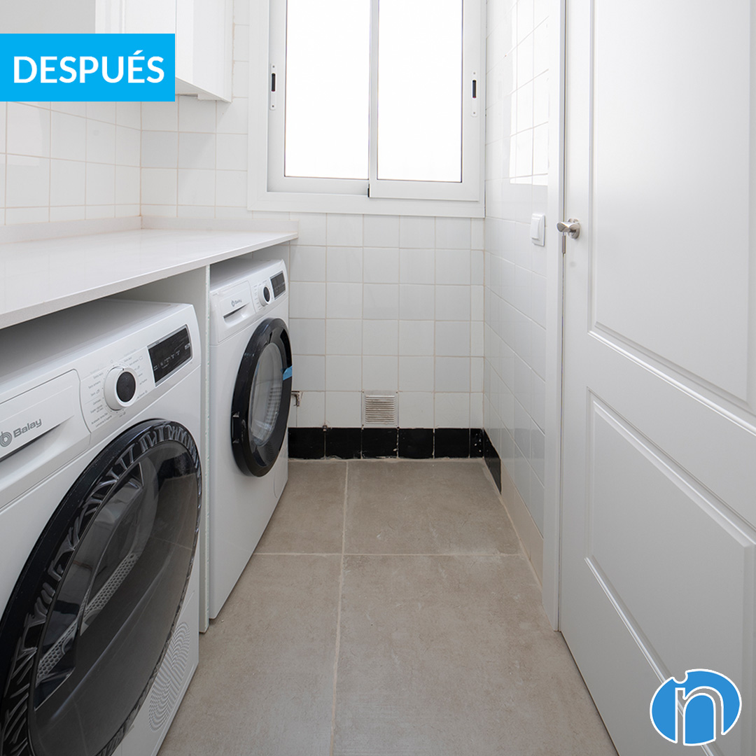 La nova imatge de la cuina és més moderna, igual que els nous electrodomèstics. Al mateix moble de cuina s’hi integren el forn, el microones i la nevera. A més, també hem reformat la galeria. És un espai annex que ha passat de ser un espai en desús a convertir-se en una sala de la bugada perfecta.