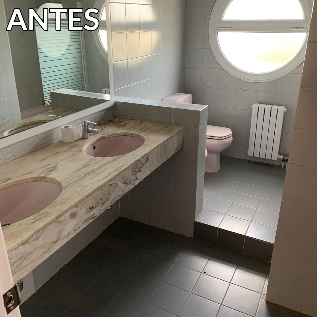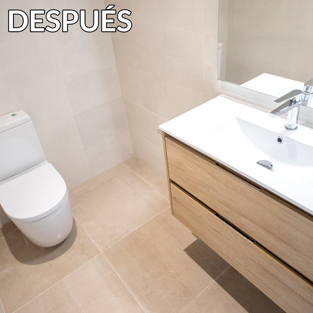 El treball de reforma integral va implicar la renovació completa de tres cambres de bany. En tots els casos es va treballar en un nou interiorisme i es va instal·lar un complet equipament sanitari. S’han utilitzat rajoles beige per enrajolar les parets, una bona idea perquè la llum natural arribés a cada racó de les estances. Pel que fa als sanitaris, cada bany compta amb lavabo, inodor i zona d’aigües.