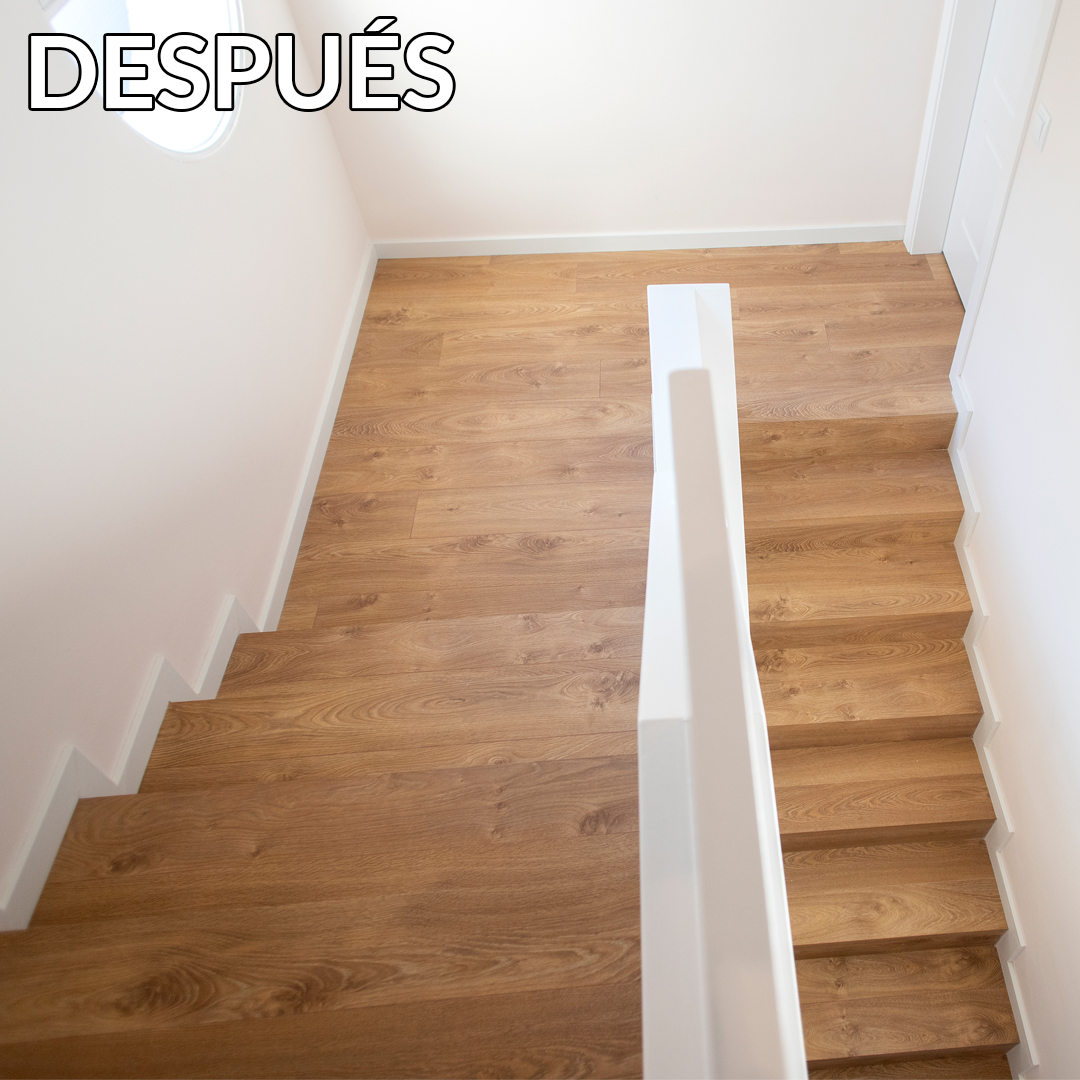 En aquesta reforma integral, per pintar les parets de la sala d’estar, els passadissos o els dormitoris es va utilitzar un suau to beige. Al seu torn, aquest es combina amb un paviment de parquet en tons mitjans de fusta. A excepció de les cambres de bany, aquest tipus de terra es va col·locar en tota la superfície de la casa. També és el cas de l’escala que connecta les dues plantes de la casa, que va passar de ser de rajoles a comptar amb esglaons de fusta.