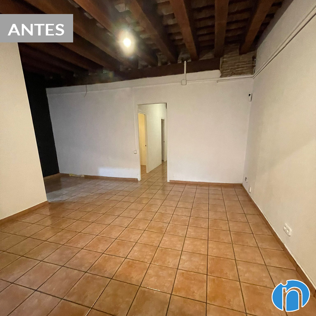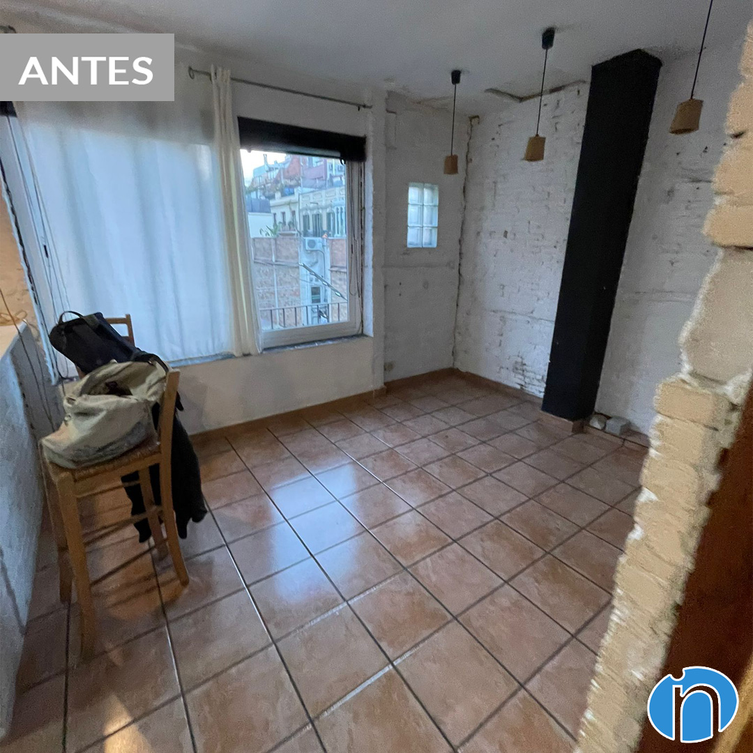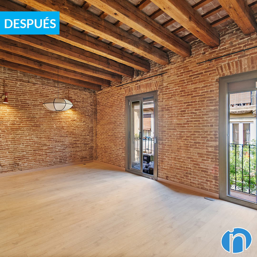 Abans de la reforma, la distribució del pis estava molt compartimentada. La zona de dia ocupava un espai que no aprofitava la llum natural. La zona de nit es trobava a la part més lluminosa. Ara, després de la reforma en Barcelona, s’ha girat completament la disposició. L’espai on abans hi havia els dormitoris ara acull un ambient diàfan. Aquí s’hi ubiquen la sala d’estar, el menjador i una gran cuina oberta. Les parets de maó vist i les bigues de fusta originals s’han restaurat curosament, aportant caràcter i personalitat al conjunt.