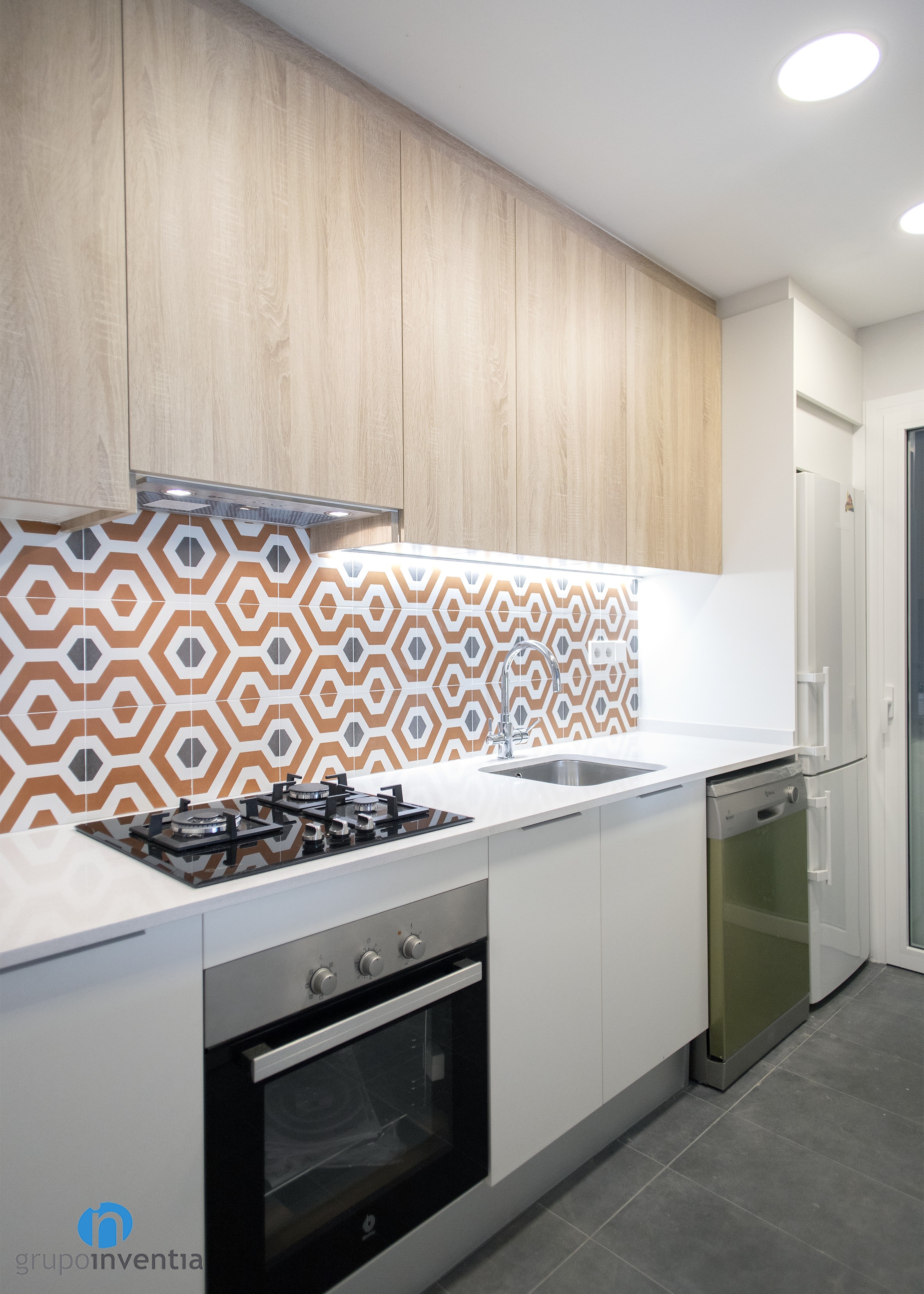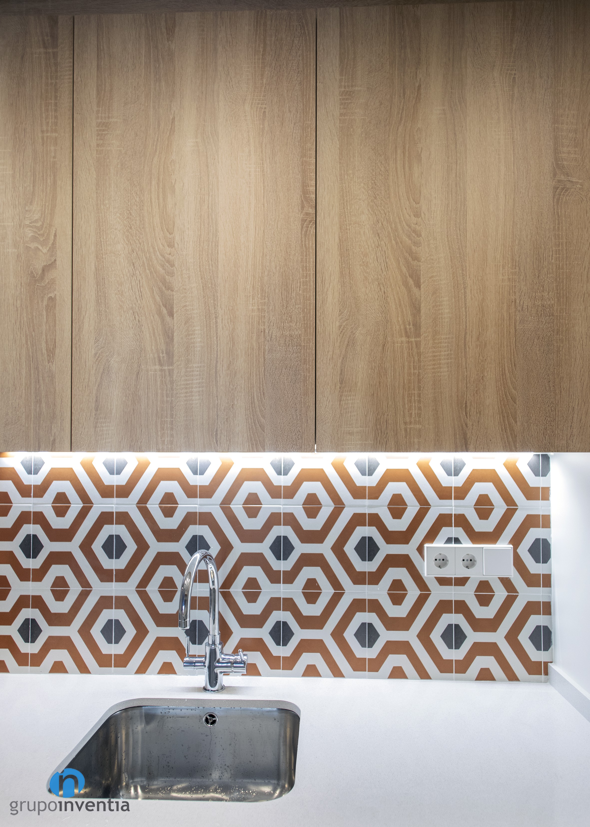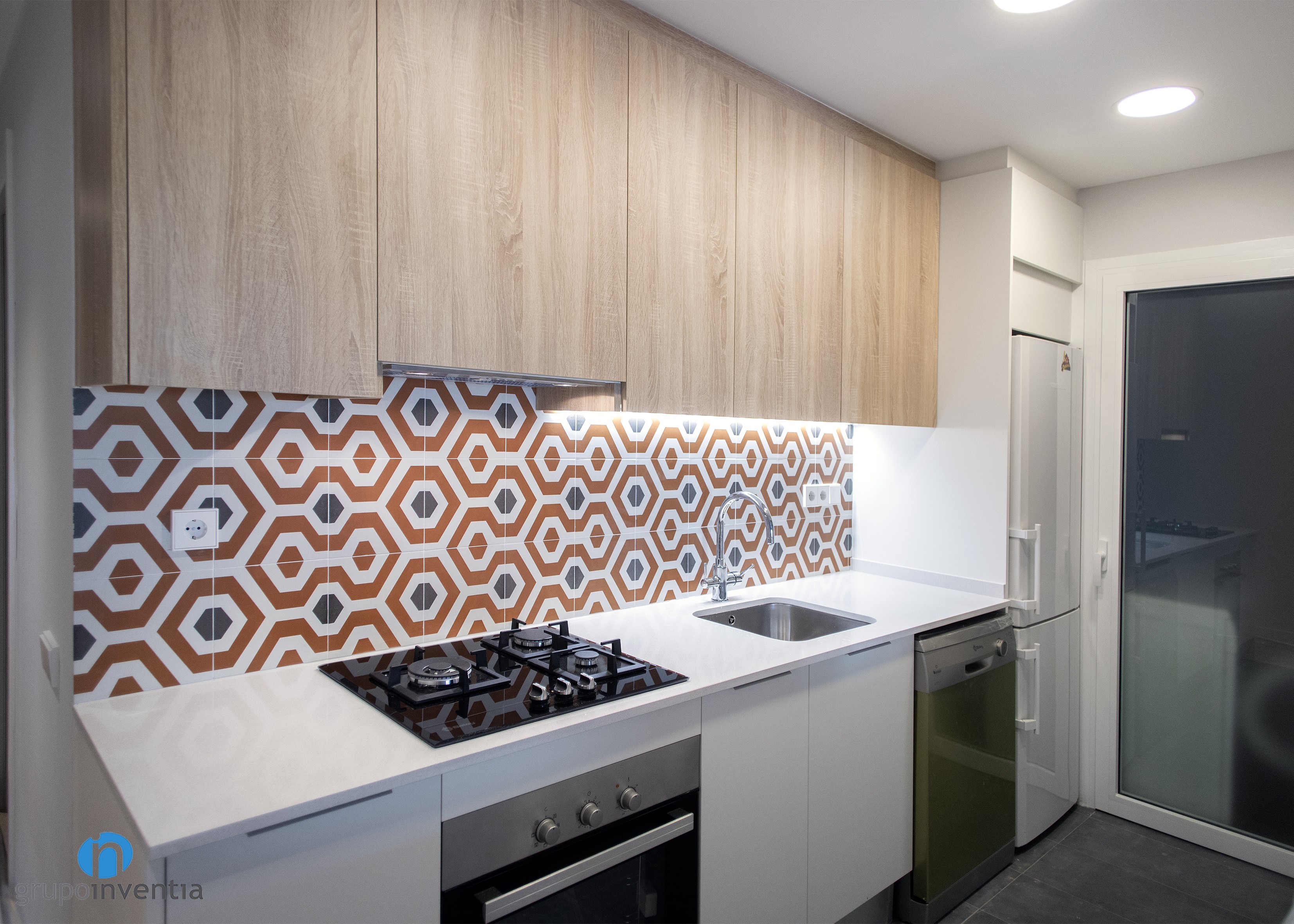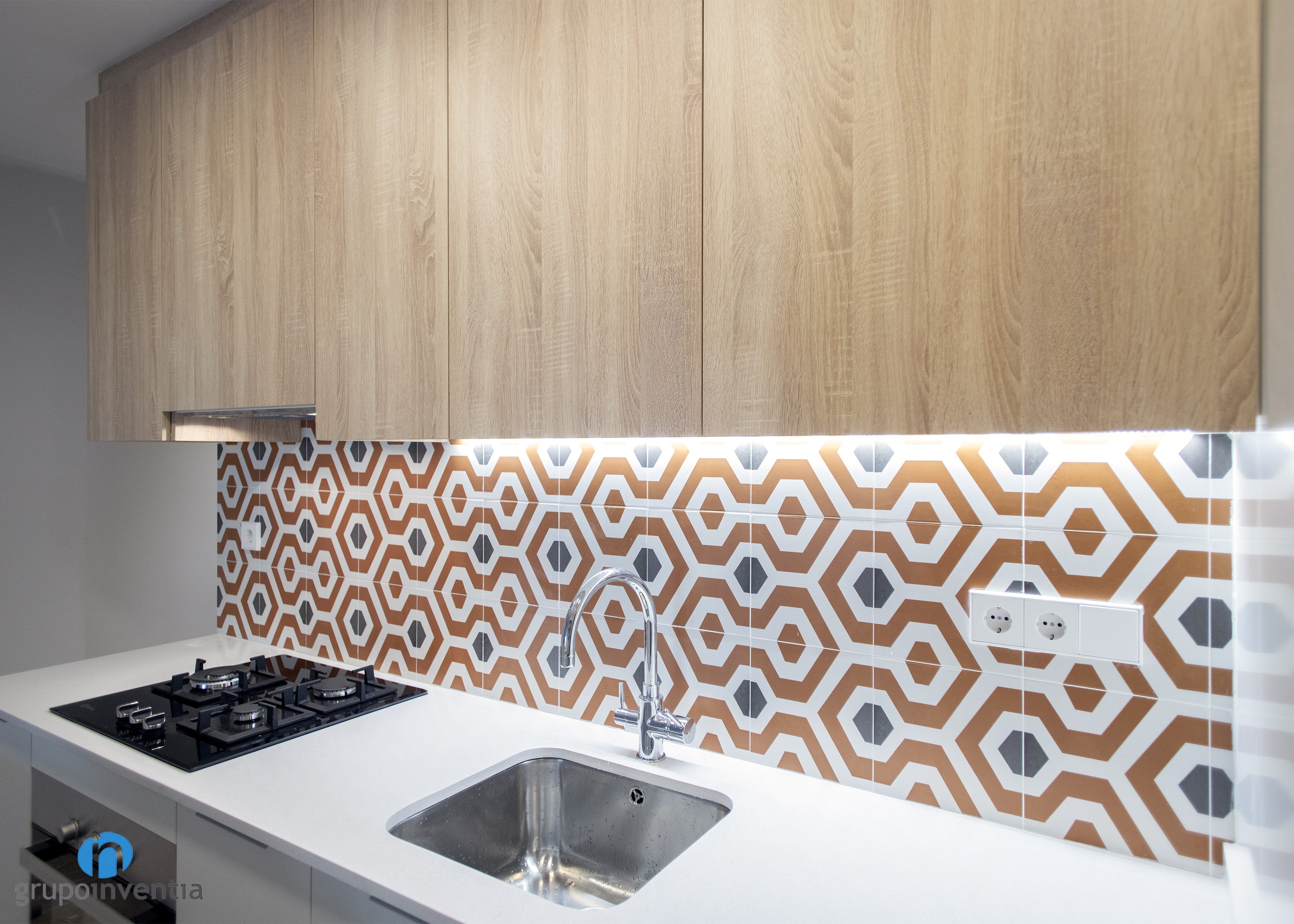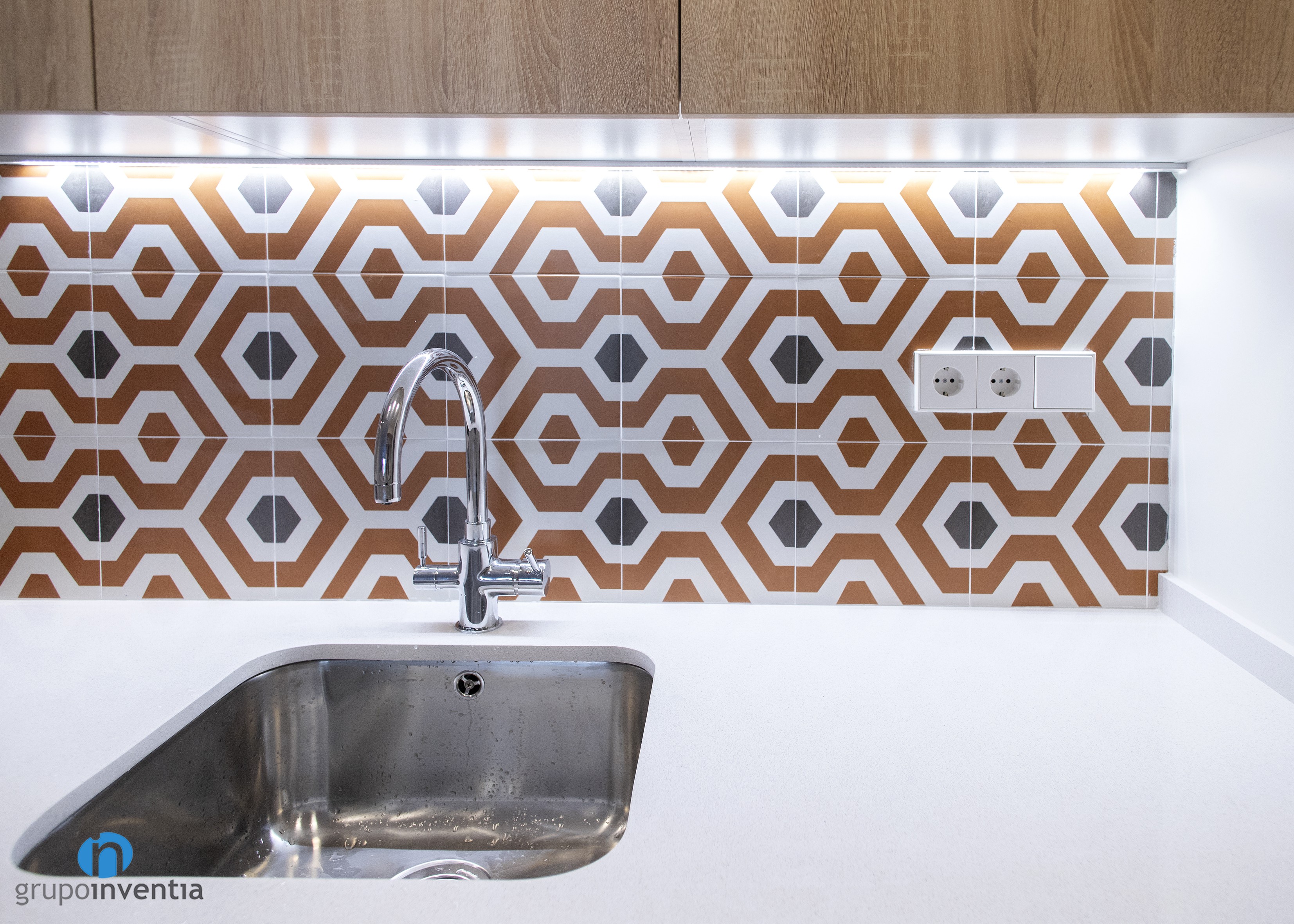 Pel que fa al disseny d’aquesta reforma de cuina, destaca l’enrajolat amb rajoles tipus hidràulic que aporten molt de color a l’estaça. Al seu torn, també es va ampliar la capacitat d’emmagatzematge en l’estada, ja que el moble de cuina compta amb diversos calaixos i armaris situats tant a la part inferior com superior del taulell de cuina.