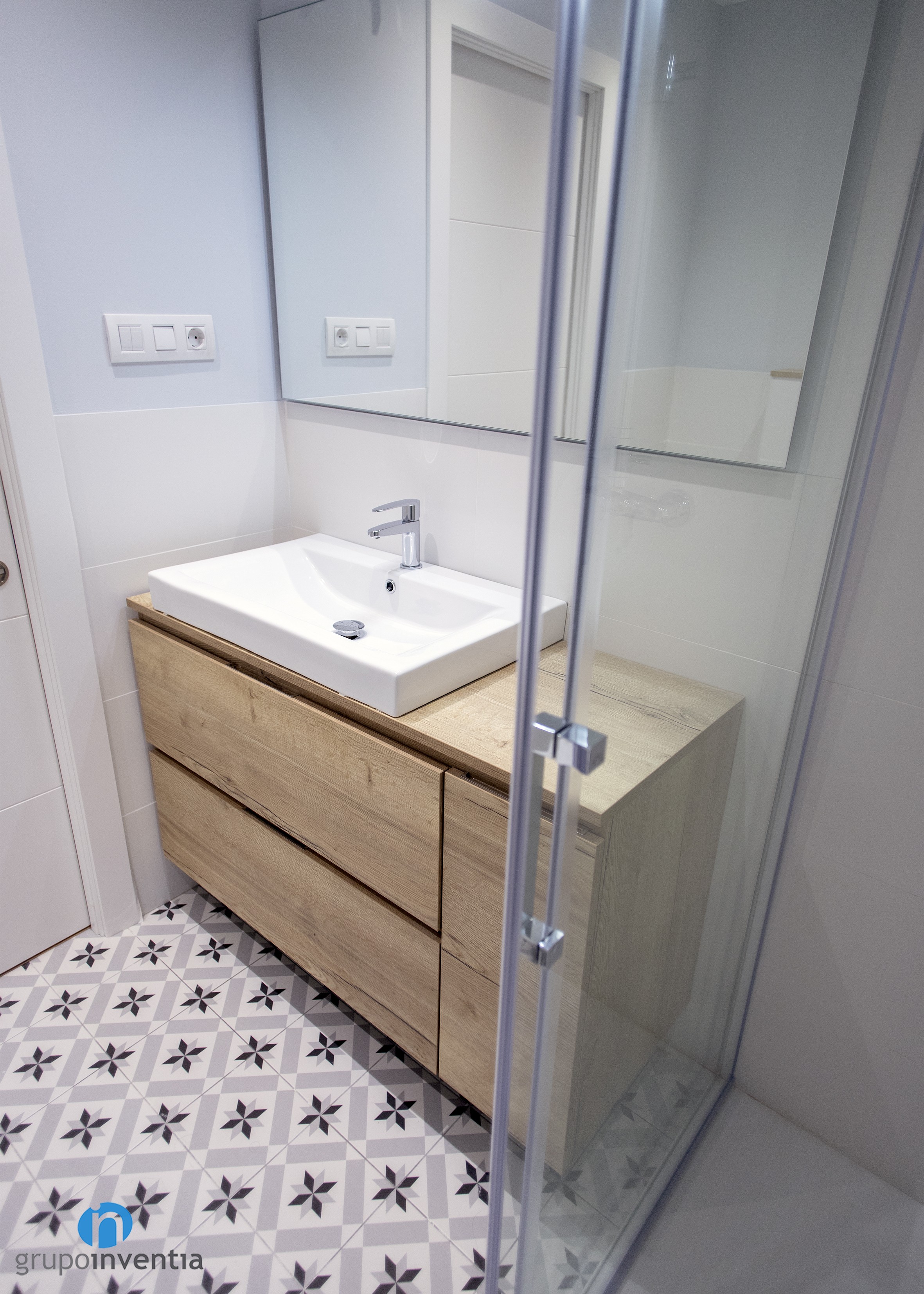L’aspecte visual de les dues cambres de bany també va millorar, lluint una imatge contemporània i molt acollidora. En els dos casos les parets es van enrajolar a mitja alçada amb rajoles de color blanc i es va pintar d’un suau to de blau la resta fins al sostre. Aquest disseny neutre facilita l’entrada a altres colors i acabats, com els de fusta que llueixen els mobles del lavabo.