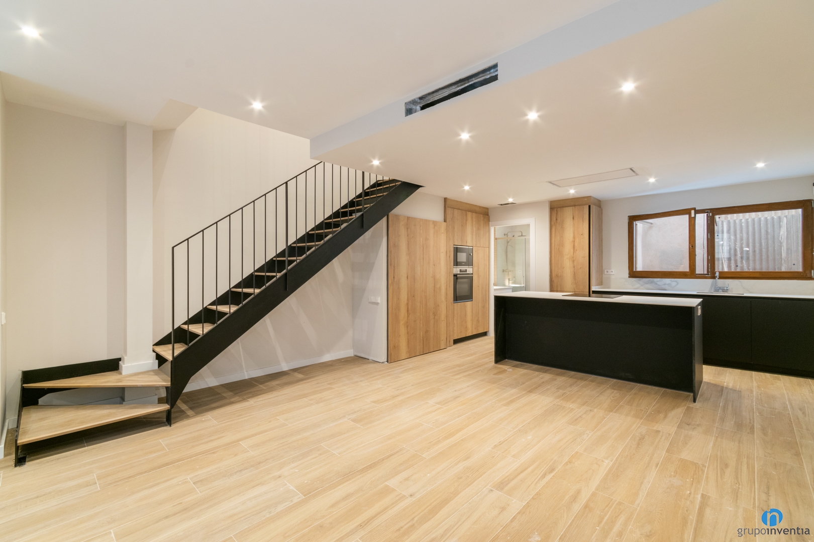També destaca el nou terra de parquet en tons de fusta natural. A més a més de contribuir a crear espais més càlids, també combina amb altres elements. Tots els marcs de les finestres són d’acabat de fusta, igual que una part del moble de cuina. Combinant aquests elements aconseguim generar continuïtat en el disseny interior.