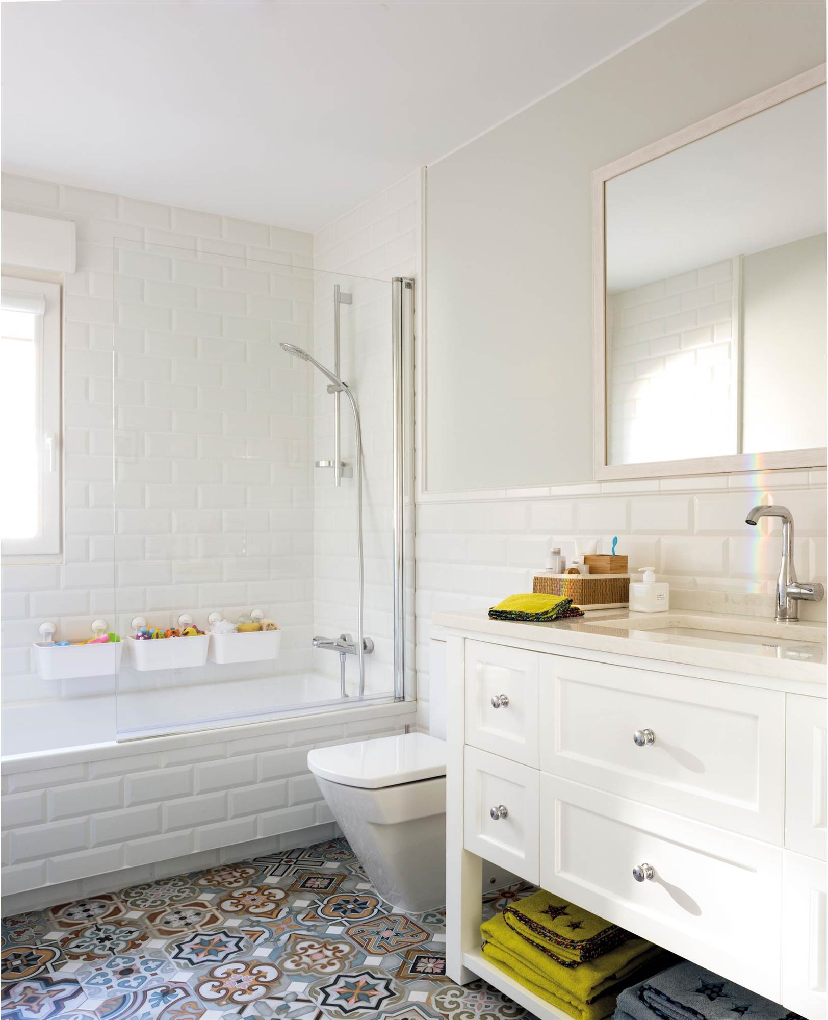 El mateix passa a la cambra de bany, en el qual es poden aconseguir combinacions molt agradables, ja que el paviment hidràulic funciona de la mateixa forma al costat d’una paret enrajolada com en una pintada.