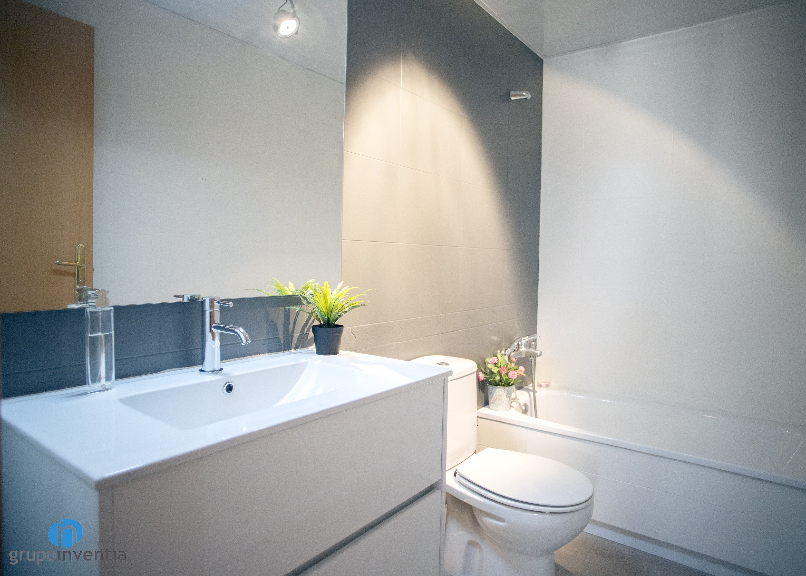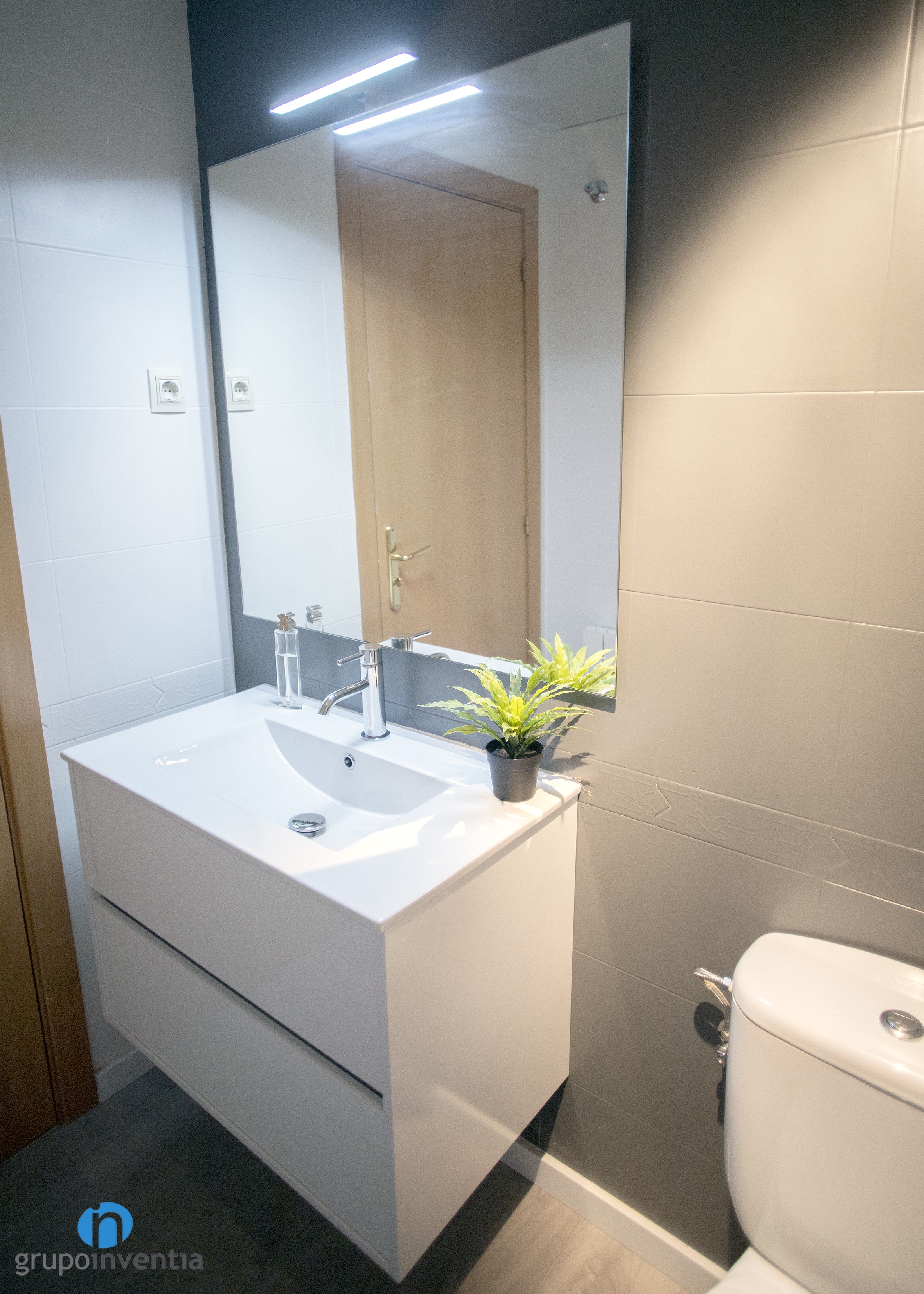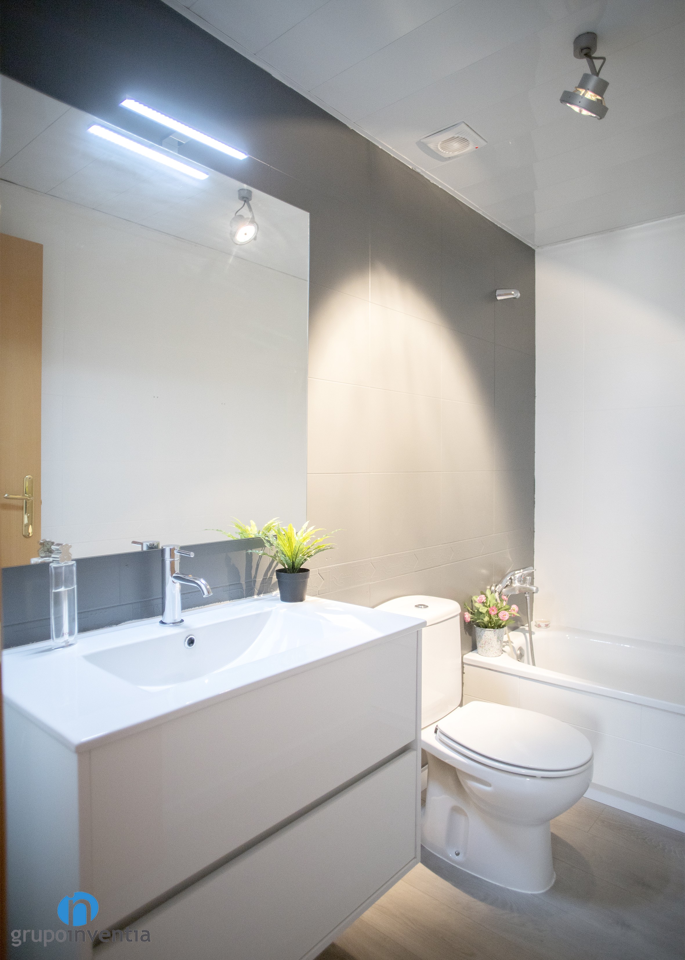 Es tracta d’un bany de tres peces equipat per oferir les millors prestacions i funcionalitat a l’hora de fer ús d’ell. Primerament es va col·locar un ampli lavabo, i sobre aquest un gran mirall de bany, amb calaixera incorporada, cosa indispensable per a disposar d’un espai per a l’emmagatzematge i poder organitzar qualsevol producte de bany.