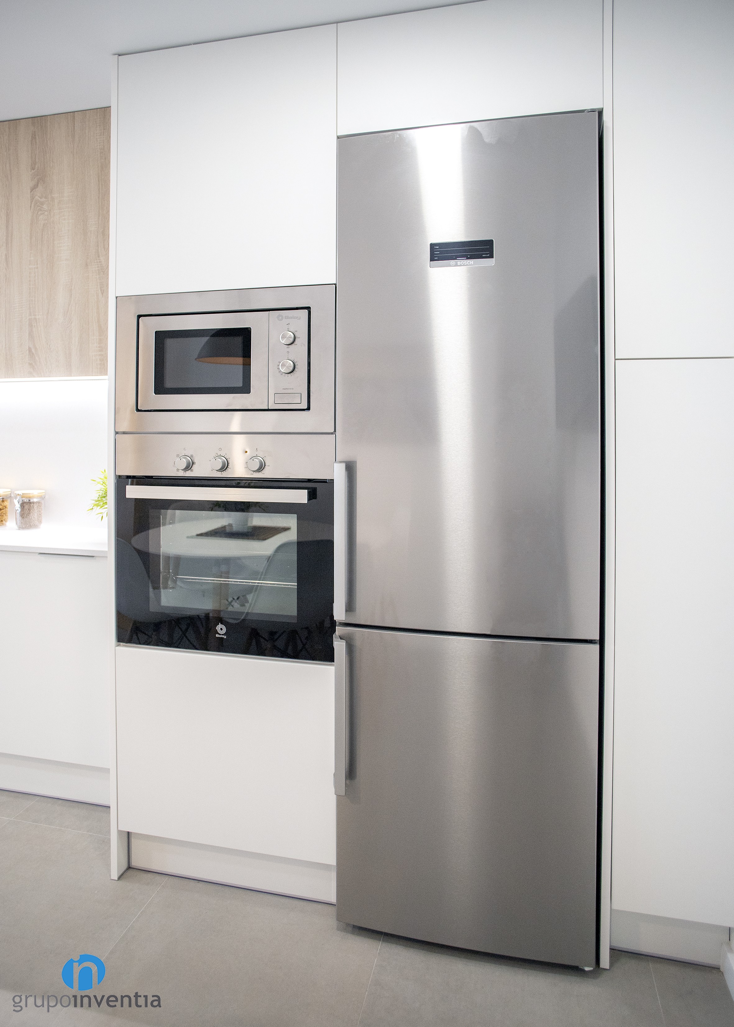 A l’extrem dret de la cuina es van encastar els electrodomèstics, compostos per un forn, un microones i una nevera. Just davant d’ells es va habilitar una zona office amb una taula i diverses cadires. A més d’una nova imatge i equipament, aquesta cuina també va veure ampliada la seva capacitat d’emmagatzematge, comptant amb diversos calaixos i armaris al llarg de la part inferior del taulell de cuina i en trams de la superior.