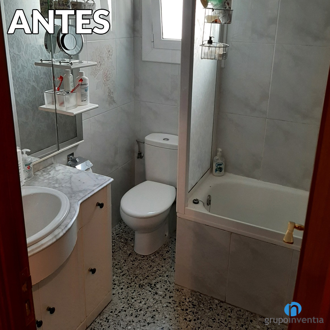D´una banyera protegida amb mampares opaques s´ha passat a un plat de dutxa amb mampares de portes corredisses transparents. A més de ser una peça sanitària més pràctica el seu disseny no li resta espai visual a la cambra de bany. Pel que fa a la nova imatge s’han retirat les rajoles originals d’acabat en marbre i se n’han col·locat unes de color beige. Amb aquesta reforma de bany s´ha aconseguit un espai molt més agradable i acollidor.