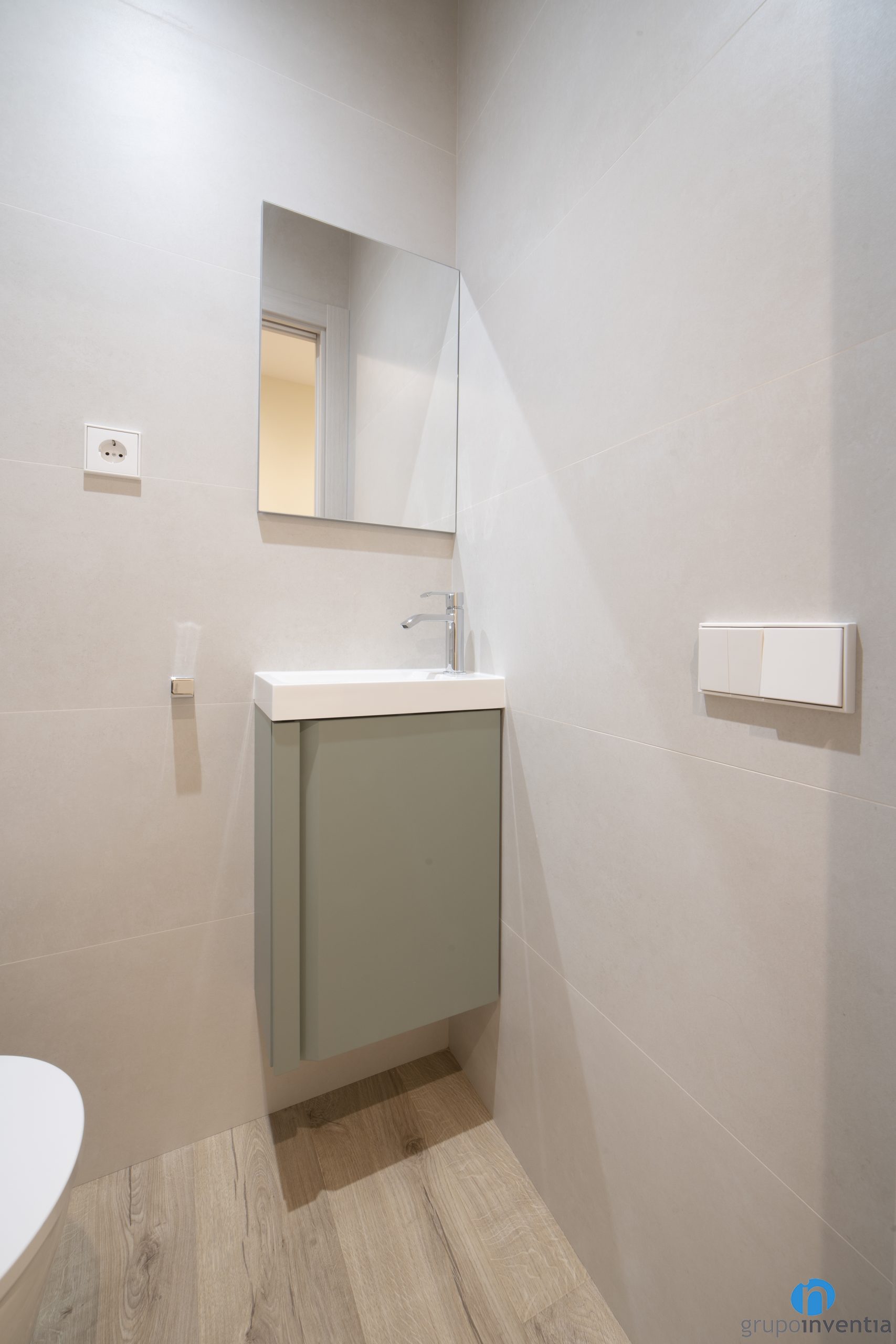 D’altra banda trobem un lavabo a què s’accedeix per una porta corredissa. Funciona com un espai de neteja complementari i compta amb un lavabo amb moble incorporat i amb un vàter. En totes dues reformes hem apostat per un disseny de bany a tots neutres amb l’objectiu d’aconseguir dos espais agradables i frescos.