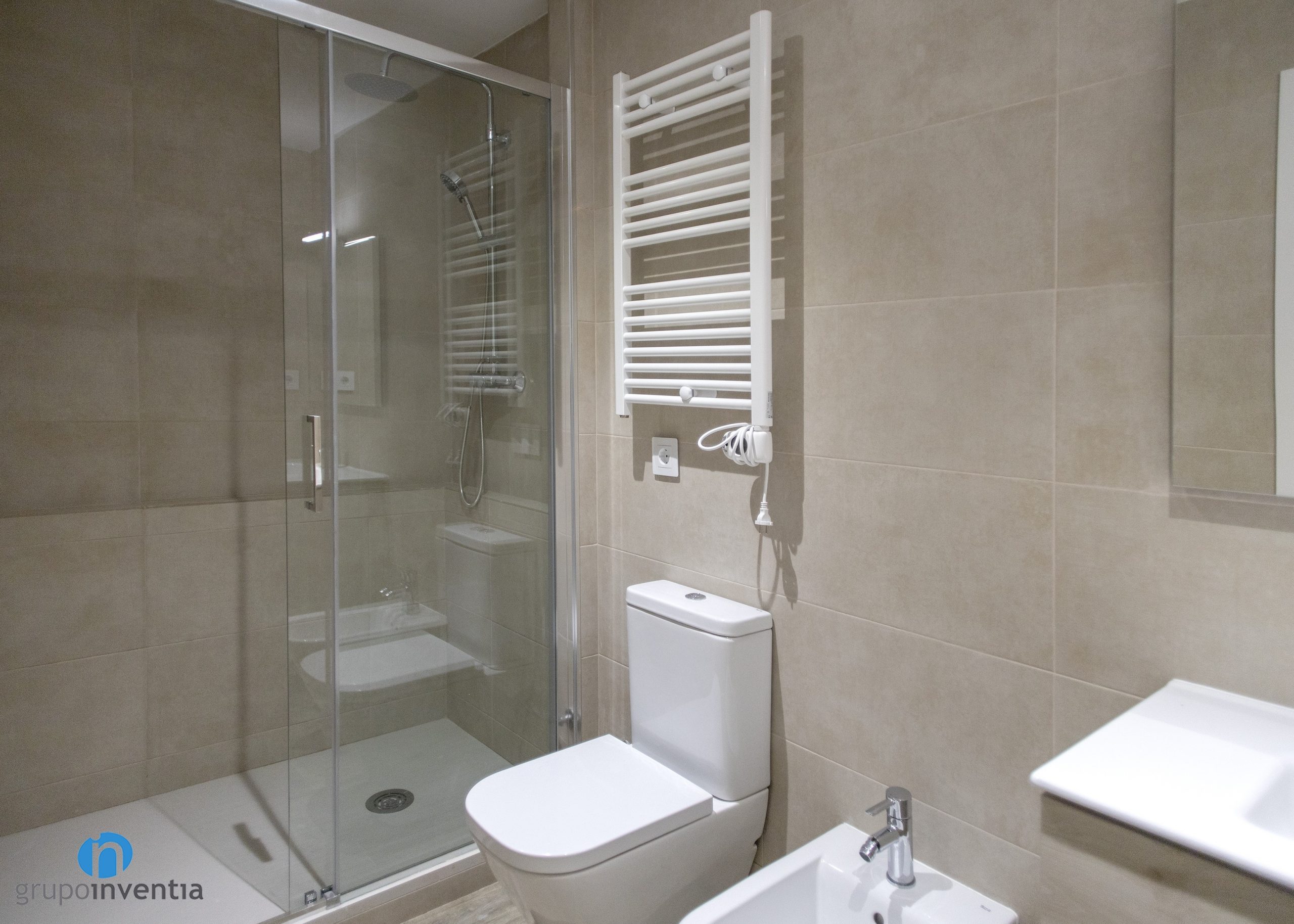Aquest últim element es protegeix amb unes mampares transparents. En aquesta reforma integral s’ha tingut en compte el aprofitar l’espai a l’màxim. Així que a la cambra de bany s’accedeix a través d’una porta corredissa. Les parets s’han enrajolat completament amb rajoles de color beige i s’ha col·locat un terra de gres que imita l’acabat en fusta. Sens dubte una estada molt fresca i acollidora.