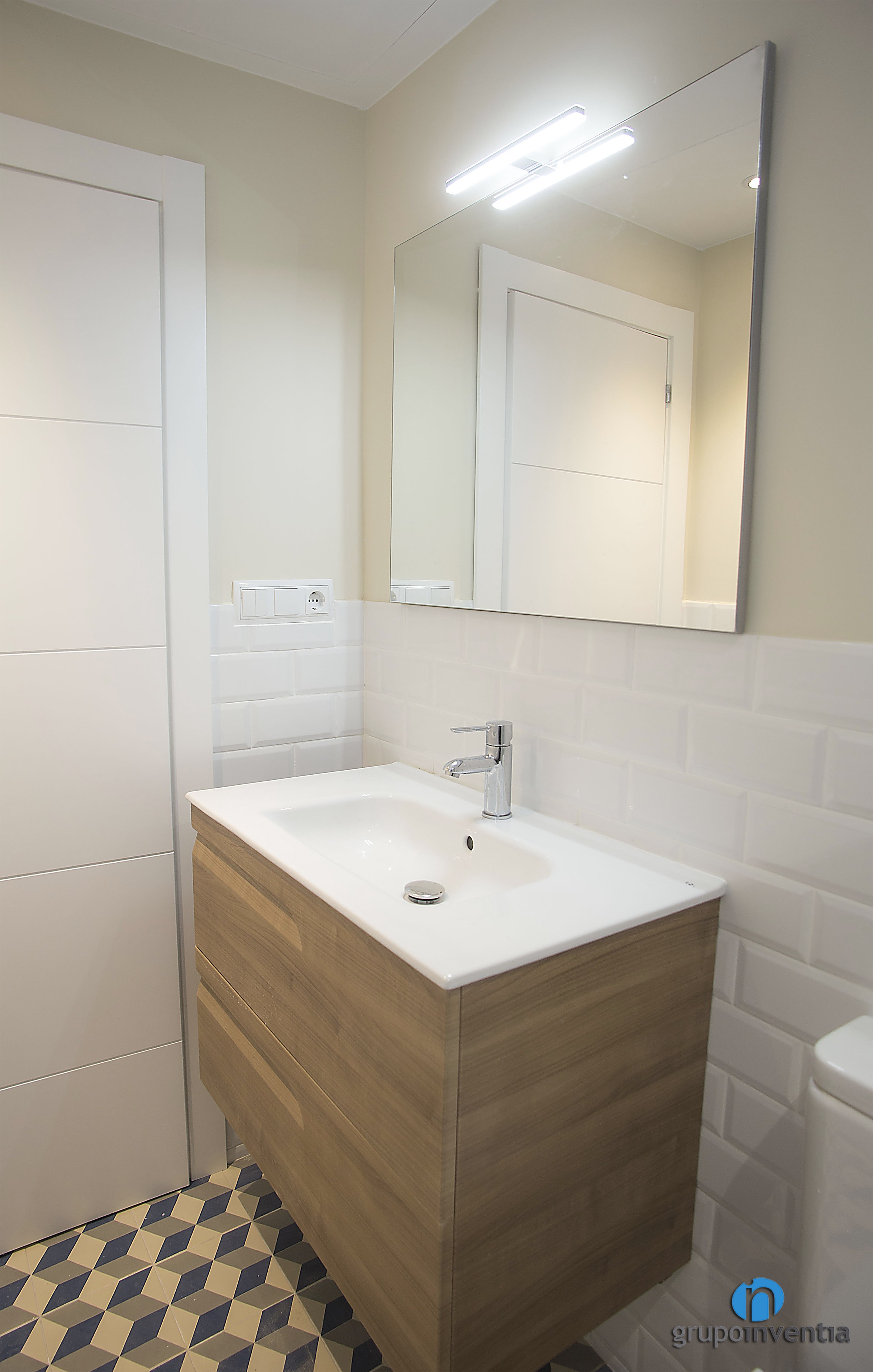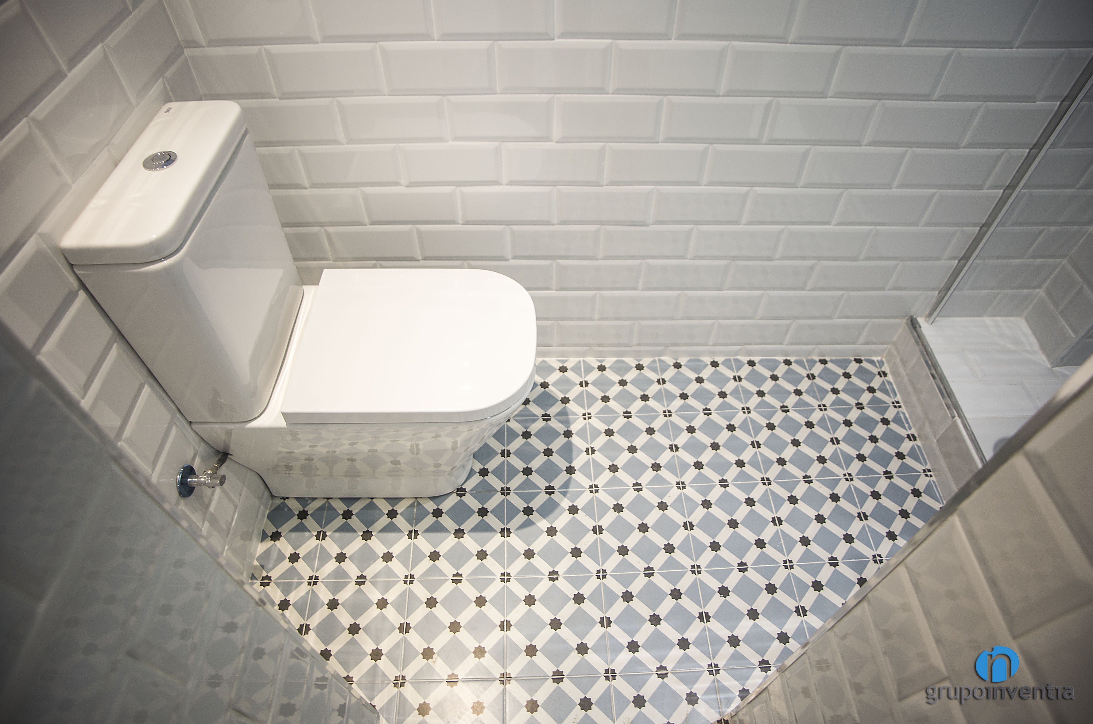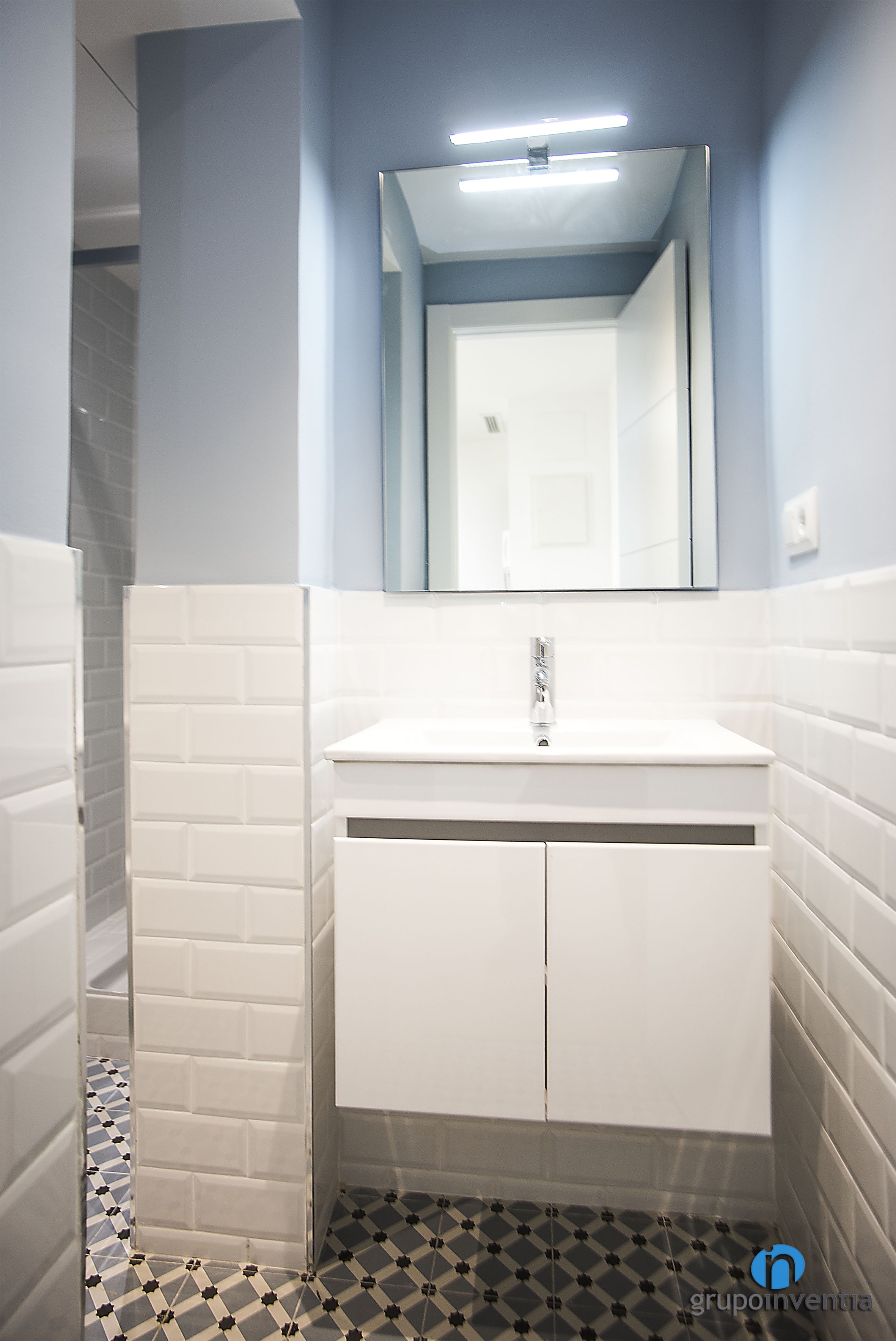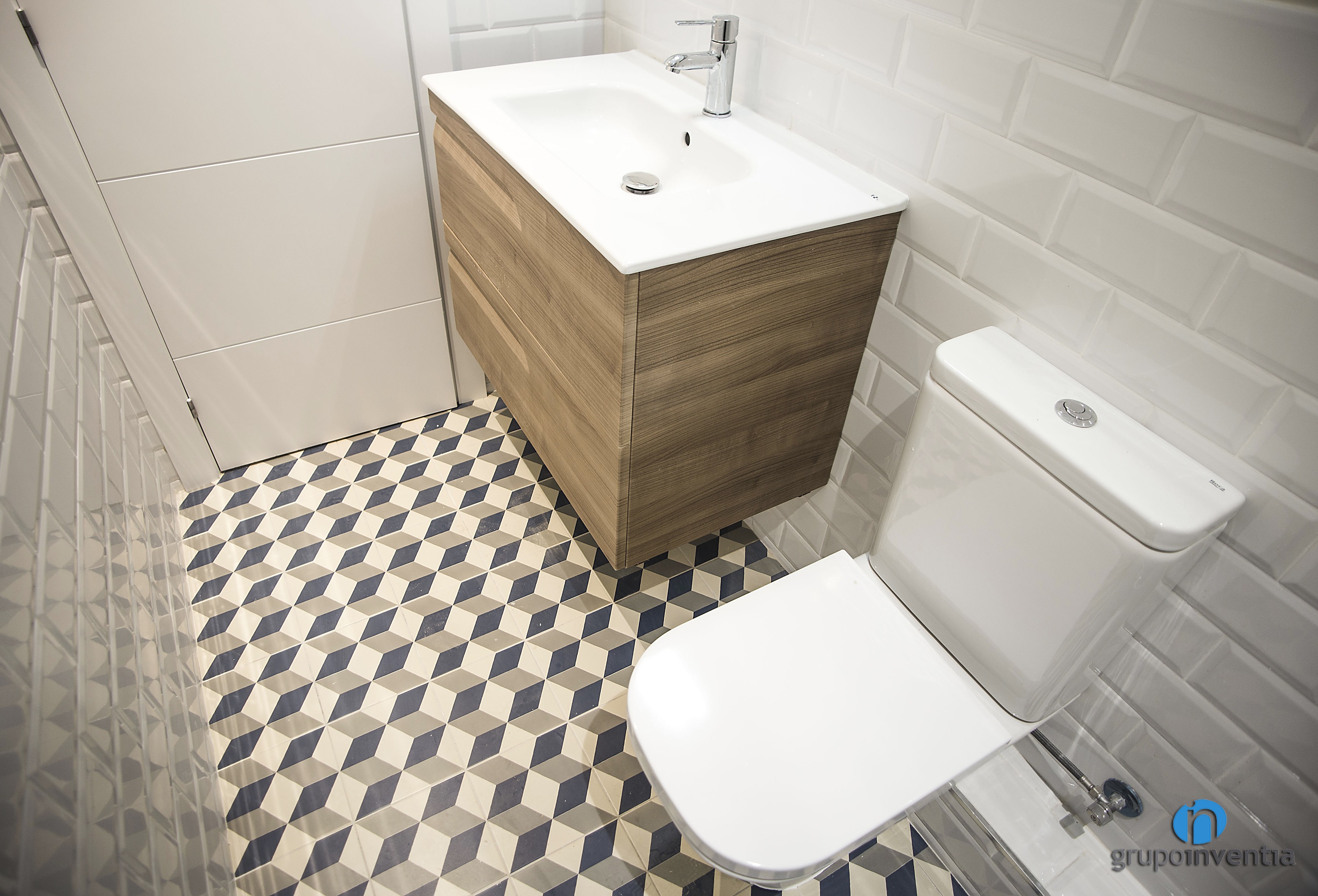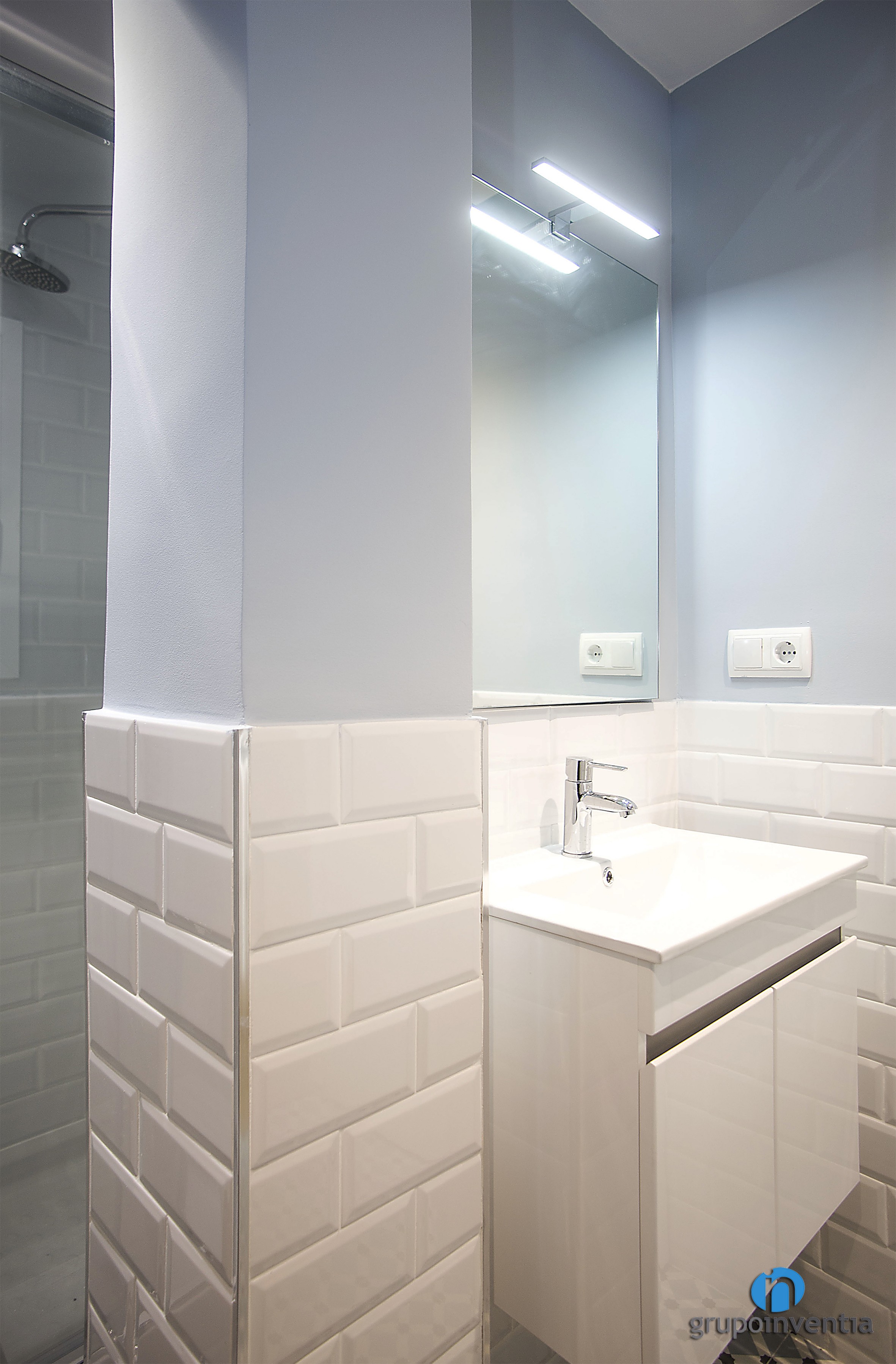 En ambdues reformes de bany es va apostar per un enrajolat a mitja alçada amb rajoles bisellades de color blanc. Tot i que es van utilitzar tons diferents per pintar les parets, el resultat va ser el de dues cambres de bany molt lluminosos i amplis. A més, en els dos es va col·locar un paviment de disseny hidràulic que els aporta molta personalitat.