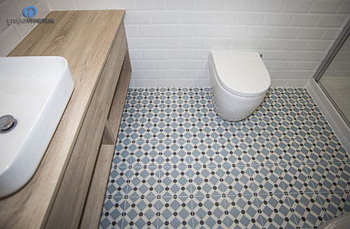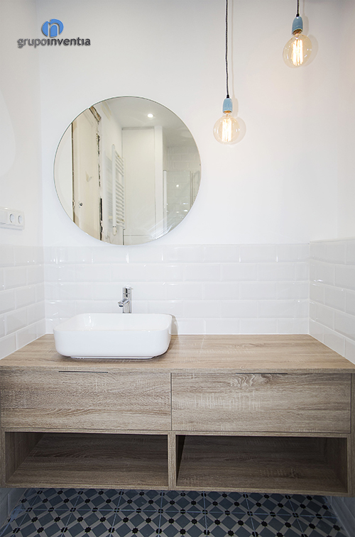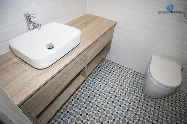 Això encaixa de meravella amb el paviment hidràulic instal·lat, que combina colors blaus i marrons. Sens dubte es va aconseguir una espaia molt àmplia visualment i molt lluminosa.