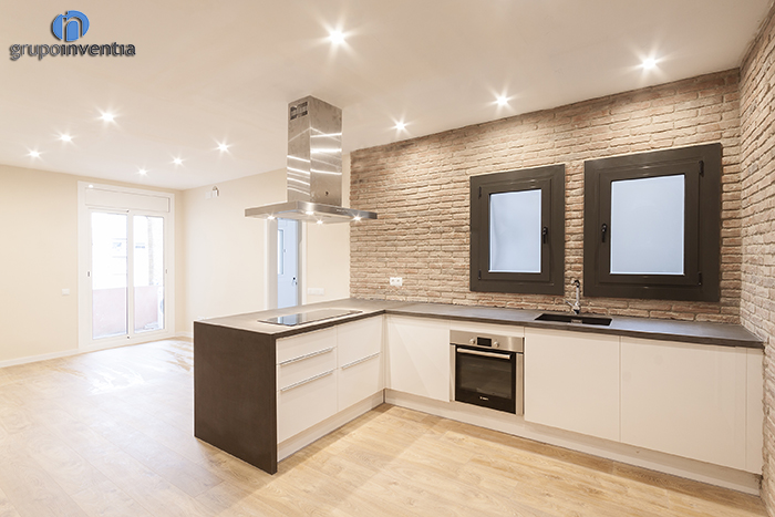 S’ha tractat d’una rehabilitació total en què hem millorat tant el disseny com l’equipament de totes les estances de l’habitatge. Hi destaquen la major lluminositat que s’ha implantat i els acabats en maó vista de la cuina i el saló. Totes aquestes millores les pots veure en el següent vídeo.