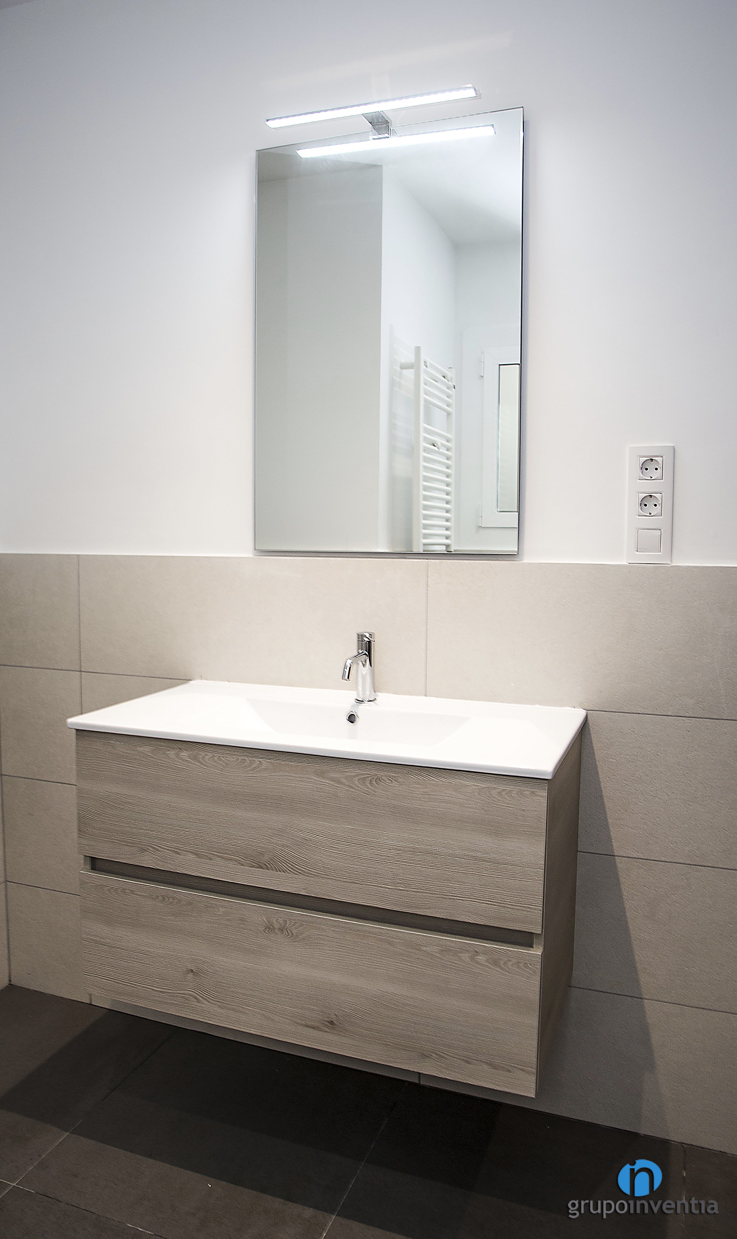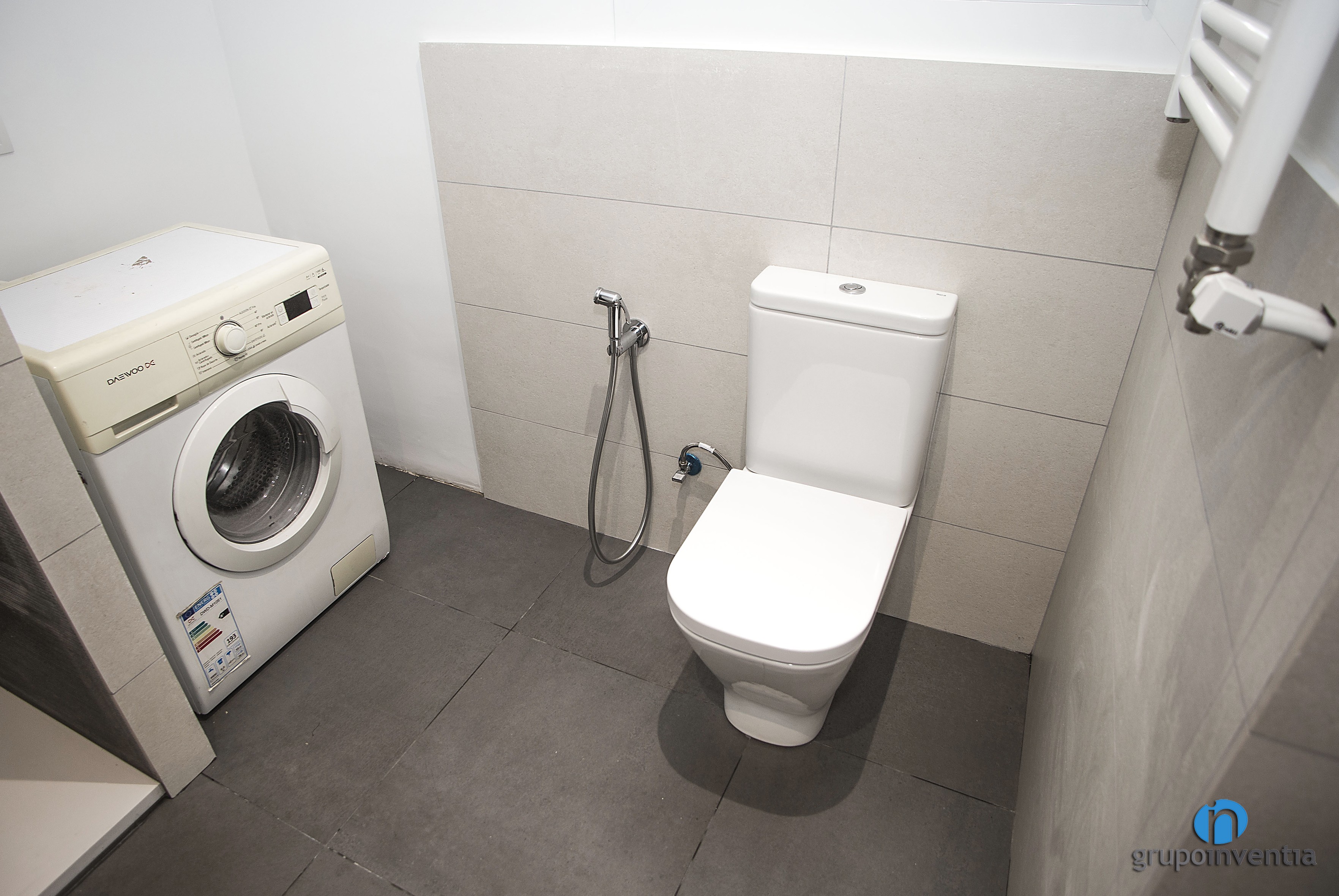 Es tracta d’una cambra de bany amplia que es va equipar per complet amb un lavabo amb moble incorporat, un vàter i una dutxa. A més, va sobrar espai per col·locar la rentadora.