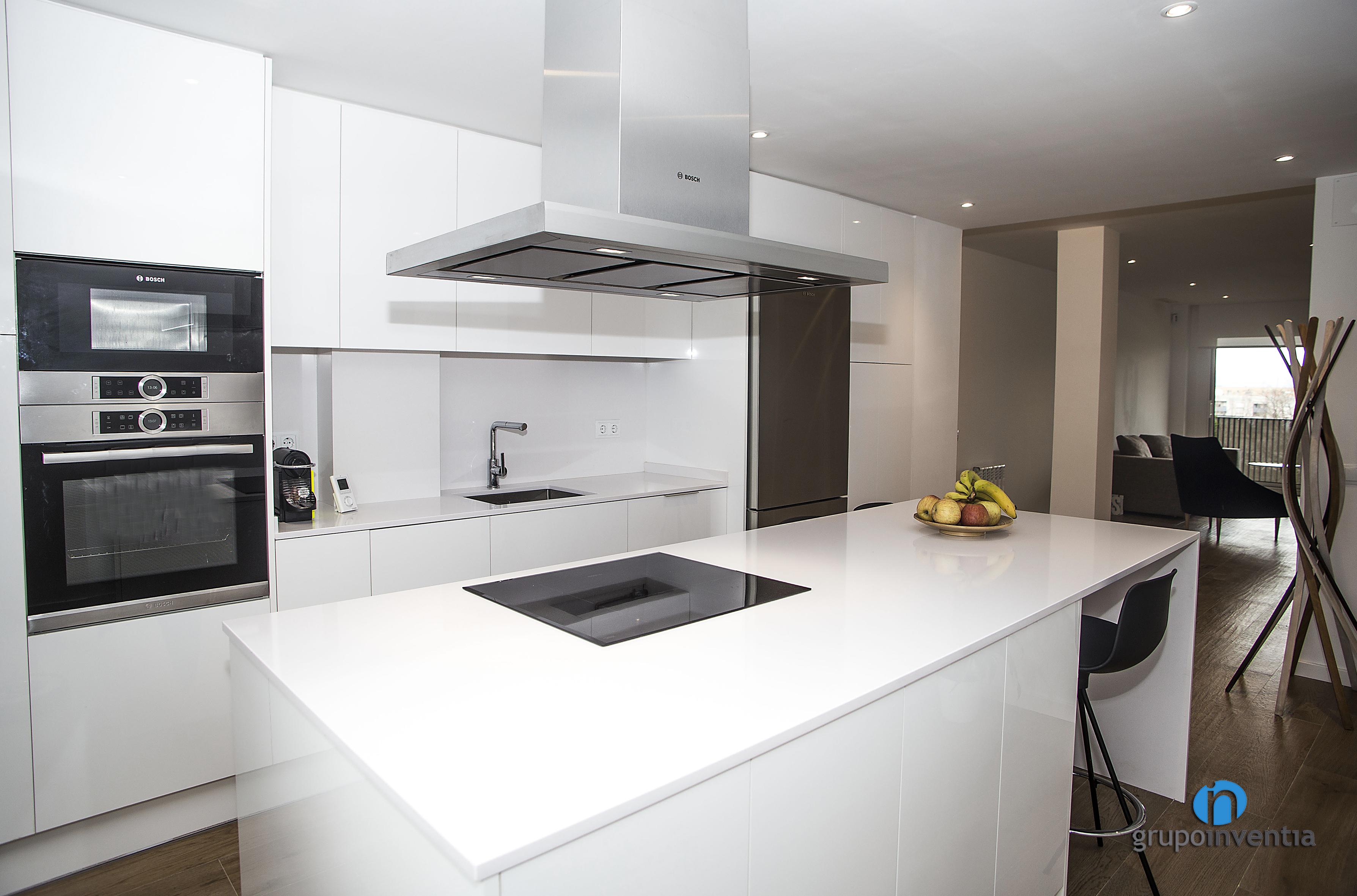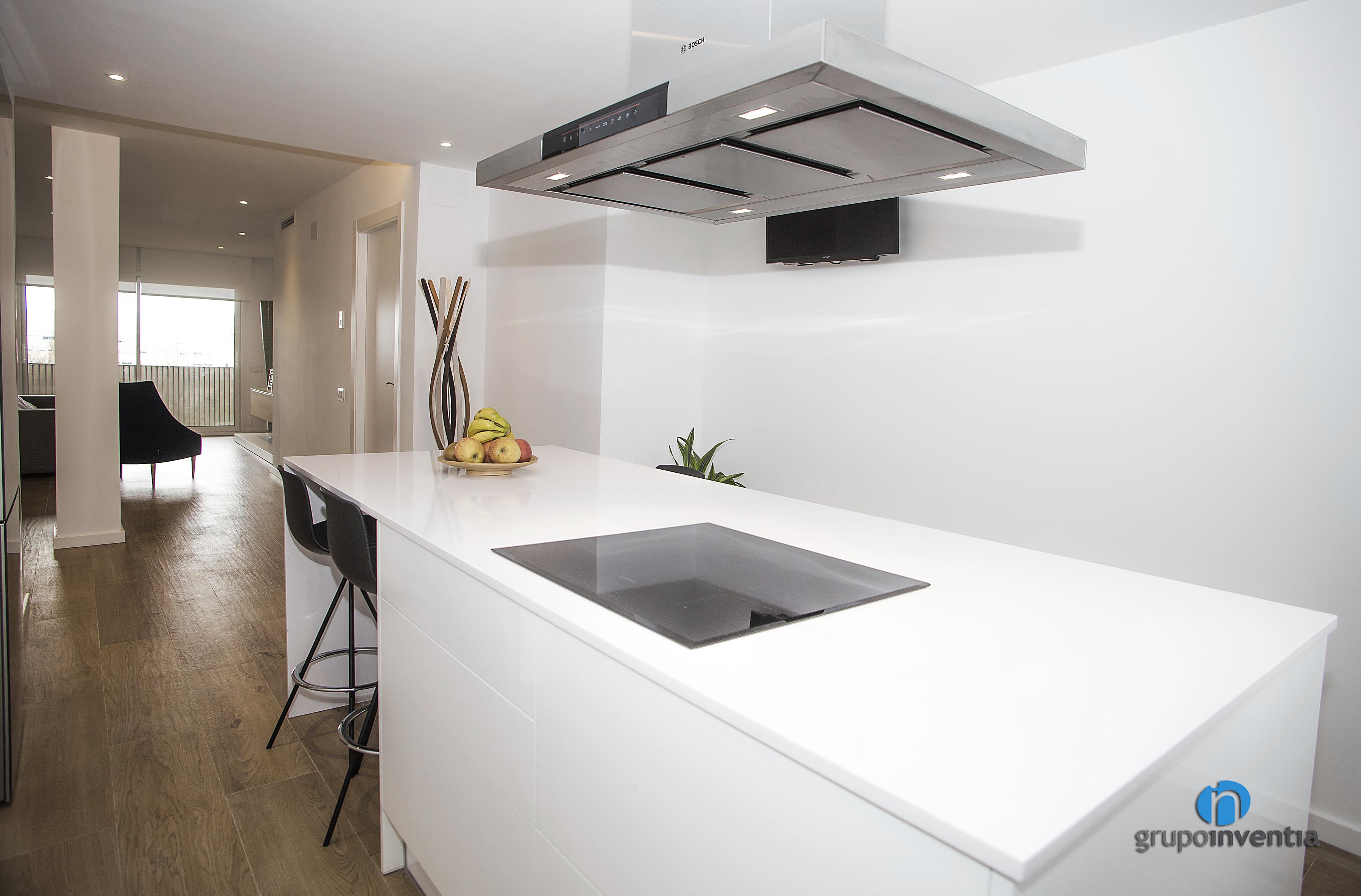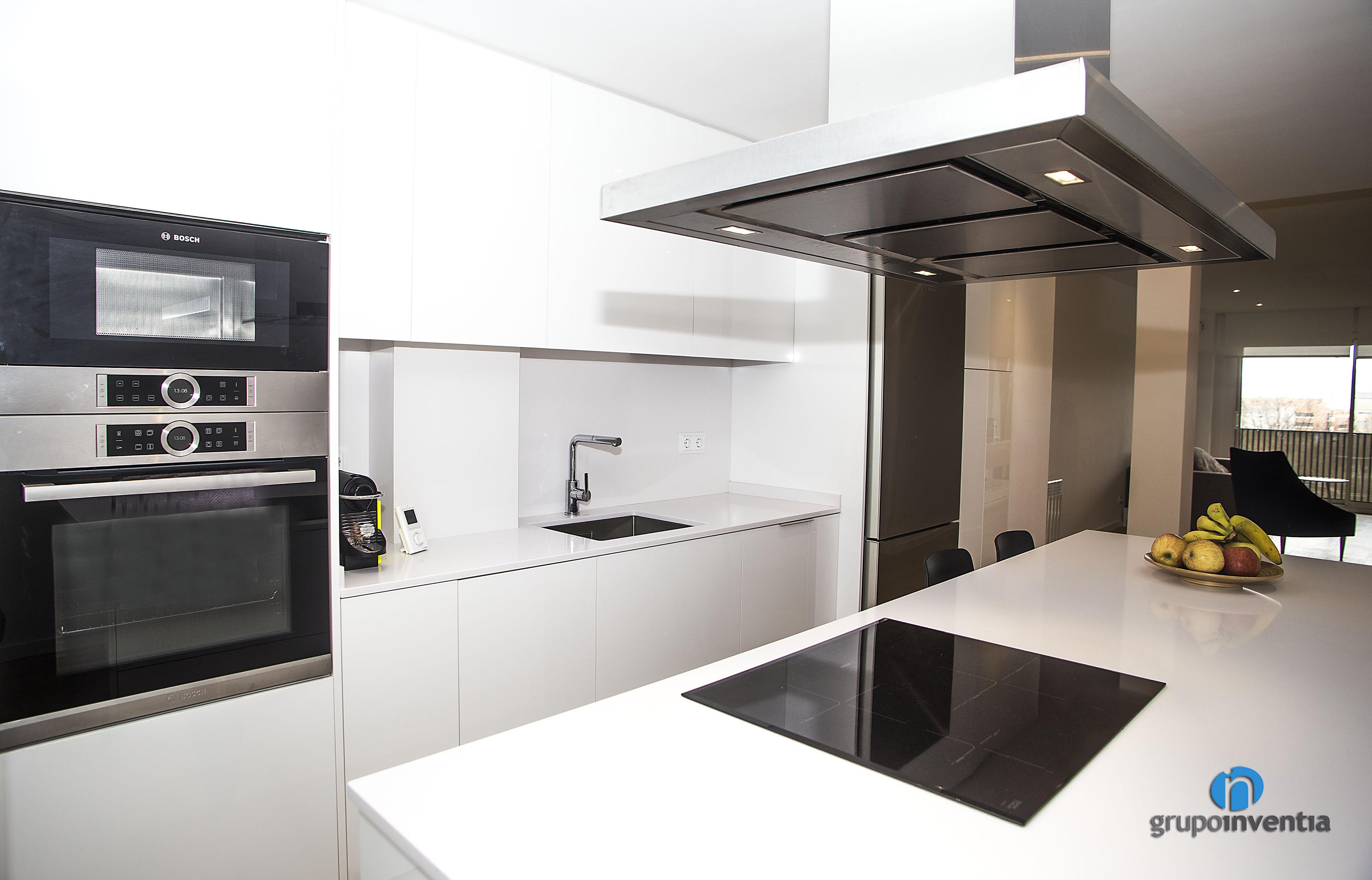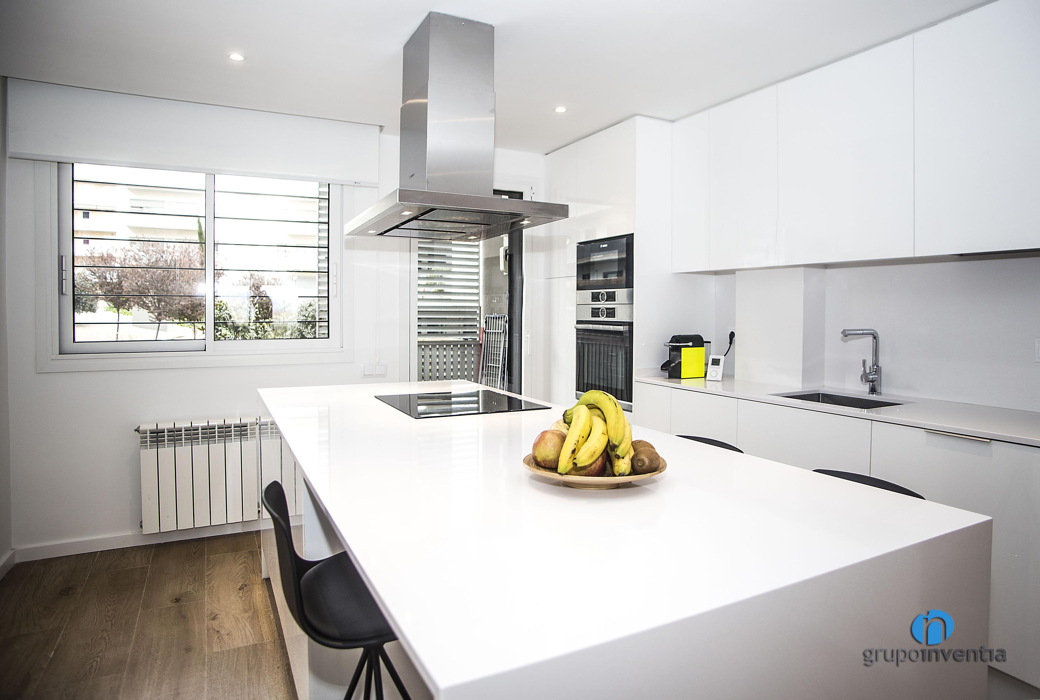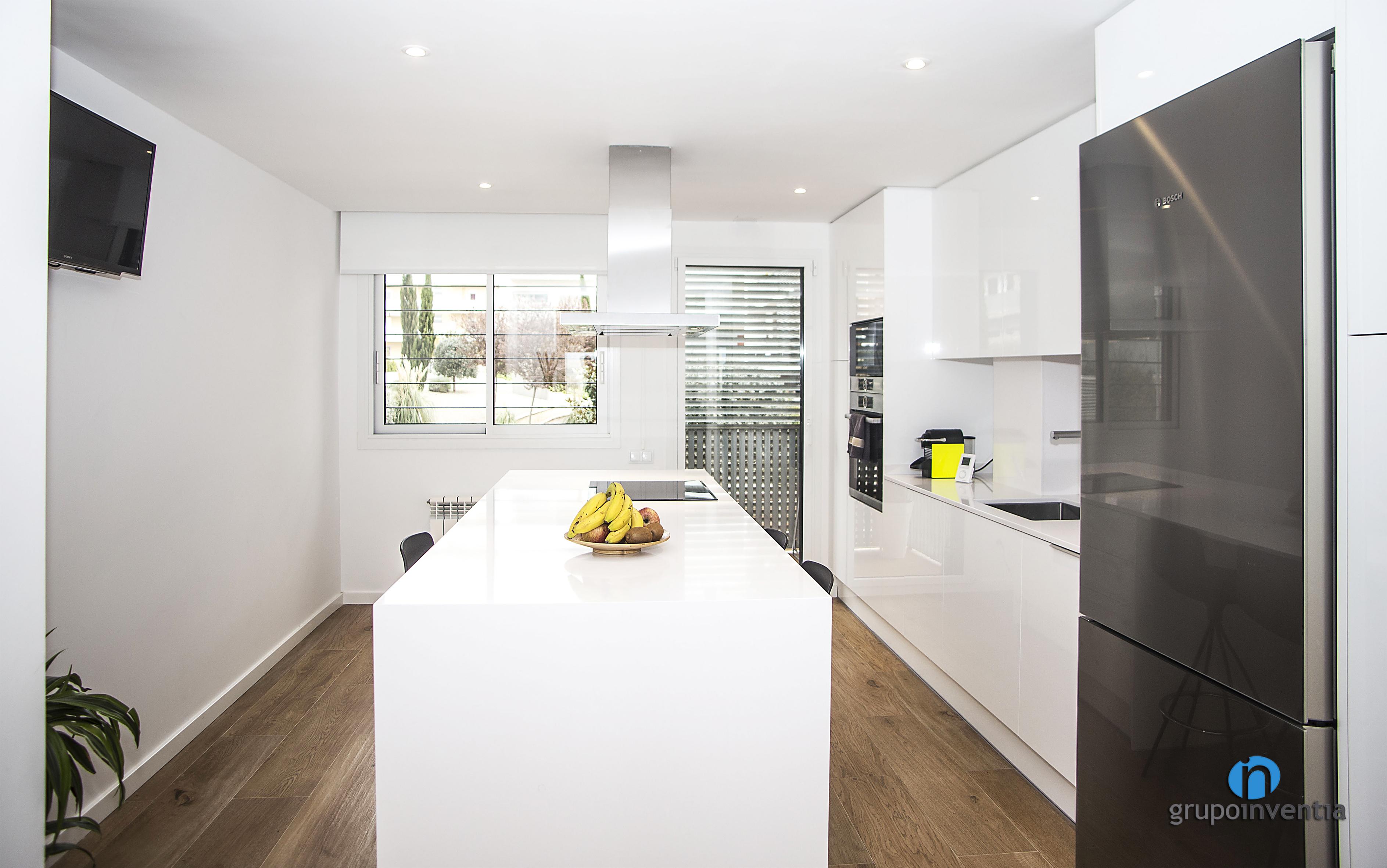 La cuina ocupa una estança pròpia i independent i en ella s’integra la mateixa cuina i la zona de menjador. Per aquesta es va utilitzar una distribució de cuina lineal amb una illa de cuina, l’espai que es va habilitar, a més de comptar amb una placa vitroceràmica, com a taula.