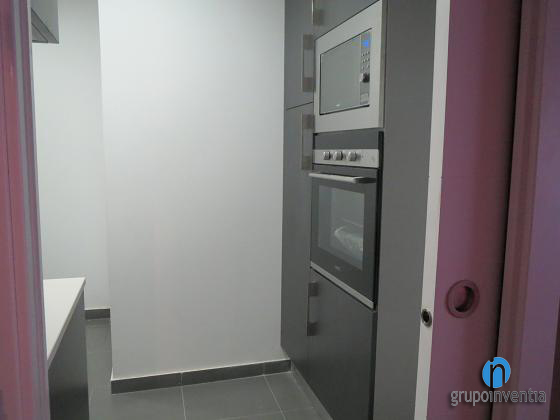 Per a la cuina, es va optar per una distribució àmplia, en forma de “L”, dotant el taulell de una pica individual i d’una cuina amb els clàssics cuatre fogons. Gràcies a això, la reforma integral sap combinar els aspectes més moderns d’avui en dia amb una cuina tradicional, resultant estil molt apropiat per a aquest tipus de reformes. Com es pot observar en les imatges, el forn i el microones estan incrustats en un dels mobles de la cuina. Amb aquesta opció es pretén guanyar més espai, a més de disposar d’electrodomèstics d’ús diari a una alçada perfecta per a la seva utilització.
