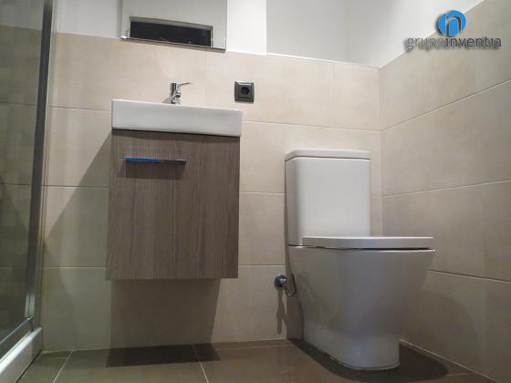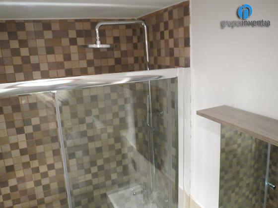 Pe al bany es va creure convenient adaptar perquè el seu ús fora còmode, sense grans abaloris però molt eficaç. Al bany no li falta de res i es va voler guanyar espai posant un plat de dutxa. Al costat, un pràctic lavabo, amb un armari incorporat per proporcionar la comoditat necessària per a l’emmagatzematge d’objectes necessaris en un bany. Quant als colors, tot un encert. El clàssic blanc porcelànic de les peces sanitàries, es combino amb tons marró fosc a les rajoles del sòl i beix a la llosa de les parets, creant sensació d’amplitud. També es va optar pels tons marrons per a l’interior de la dutxa, on es va col·locar un bonic mosaic.