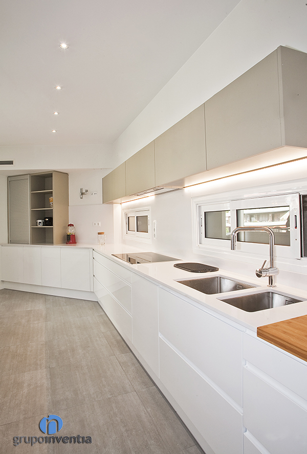 Com ja vam mostrar, la reforma de cuina es va distribuir a dos fronts i es va equipar amb tot el necessari per oferir les millors prestacions. Ara, amb tot a punt, l’estança compta amb prestatgeries i armaris per a l’emmagatzematge i amb una llum indirecta situada a la part superior del taulell de cuina. D’aquesta manera treballar a la cuina es fa molt més suportable i no cal encendre tots els llums.