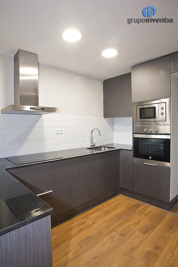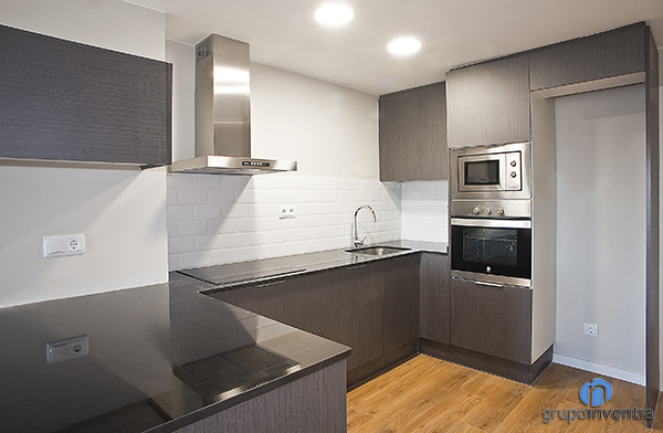 La cuina és oberta al saló i per a la seva rehabilitació es va utilitzar una distribució en forma d’U. En la part esquerra es va disposar un primer tram de taulell que, a més d’oferir una major superfície de suport i de treball, pot utilitzar-se com barra de cuina . Per la seva banda, en el costat dret es va instal·lar un moble de cuina amb forats a mida per a col·locar electrodomèstics com el forn, el microones o la nevera.
