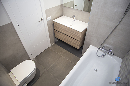 L’habitatge compta amb dues cambres de bany que es van rehabilitar i equipar completament, oferint les millors prestacions i molta funcionalitat en el seu ús. En ambdues reformes de bany, les parets es alicataron a mitja alçada amb rajoles de color beige i es va pintar de blanc la resta.