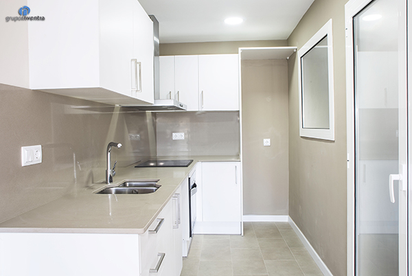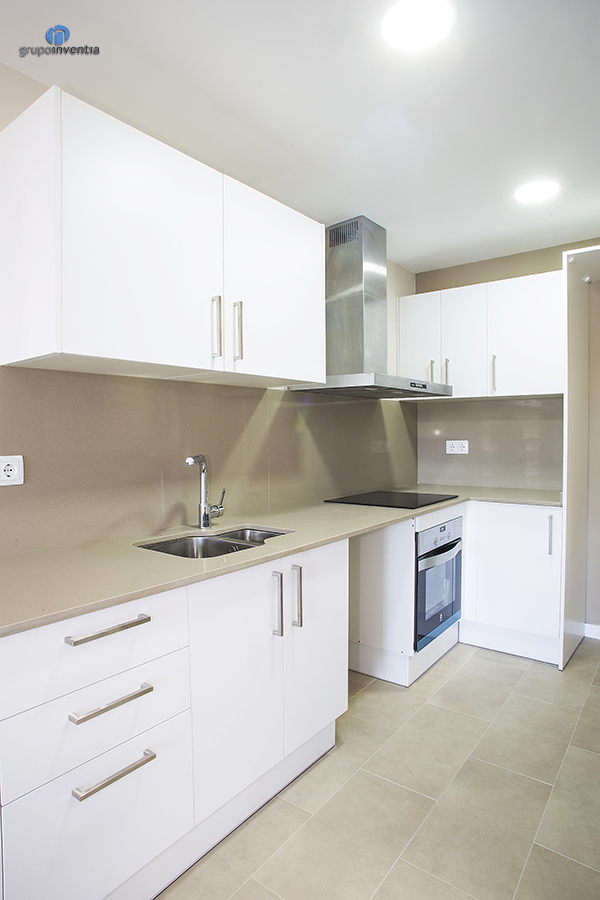 En aquest cas la reforma de cuina és oberta al saló però ocupa un espai propi i independent. En ella, per a la disposició dels seus nous elements, es va utilitzar una distribució en forma de L, comptant amb capacitat d’emmagatzematge tant en la part inferior com superior del taulell de cuina.