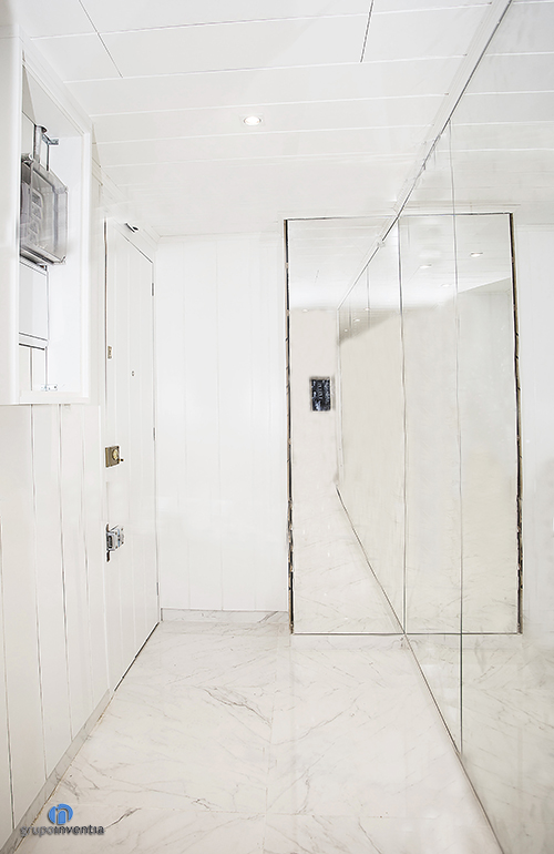 En línies generals aconseguim aplicar a l’immoble molta lluminositat i amplitud a través de la utilització del color blanc tant a l’hora de pintar les parets com en el paviment, sent en la major part de l’habitatge de rajoles del mateix color. Amb aquest mateix disseny es van rehabilitar els dormitoris, en els quals es va aconseguir un ambient idoni per al descans.