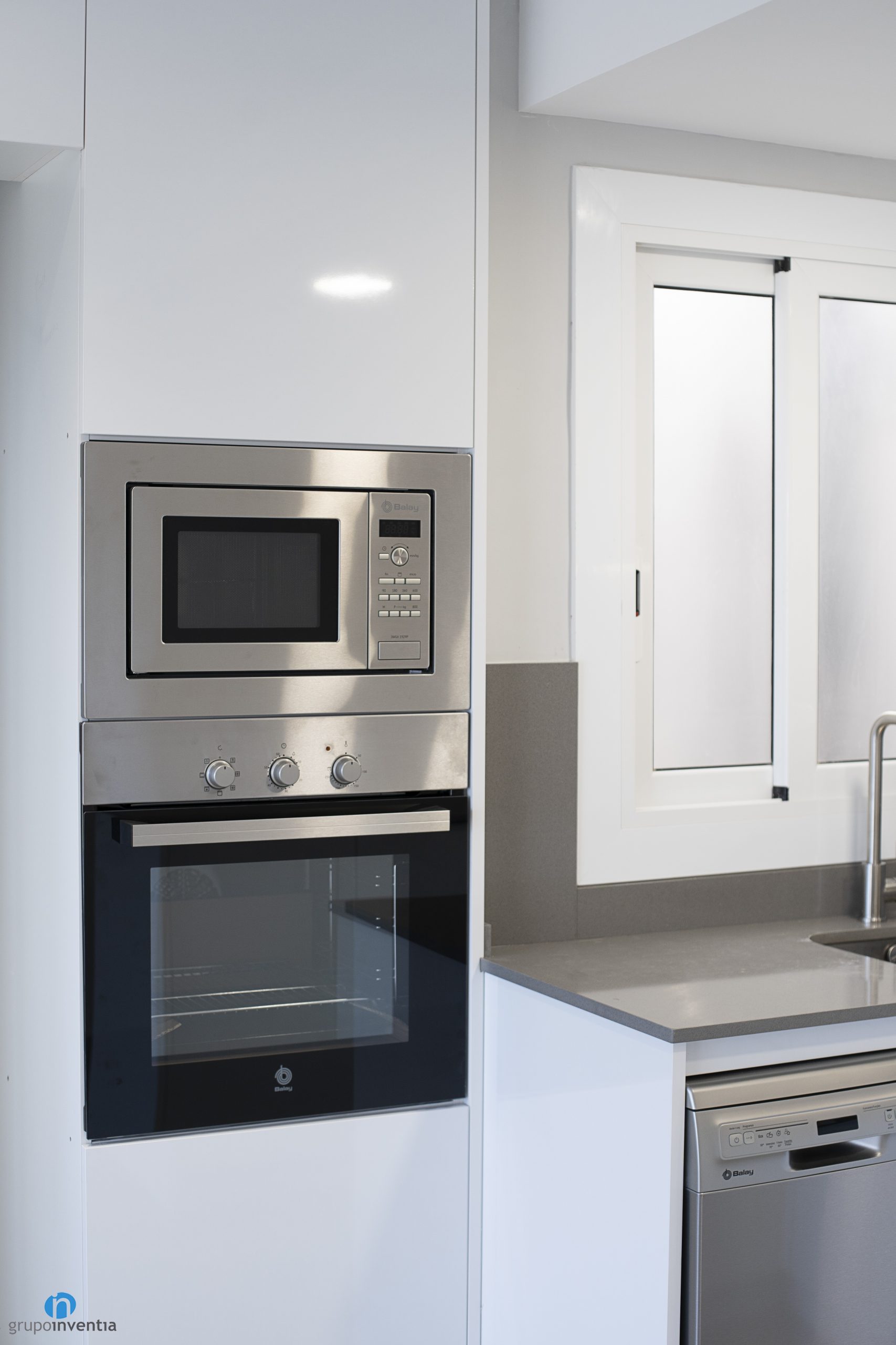 Com que es tracta d’una reforma de cuina oberta, s’ha utilitzat un disseny d’acord amb la resta de la vivenda. Tot el moble de cuina és de color blanc i es combina amb trams de taulell de color gris. És un disseny modern i que contribueix a generar un espai uniforme i lluminós.