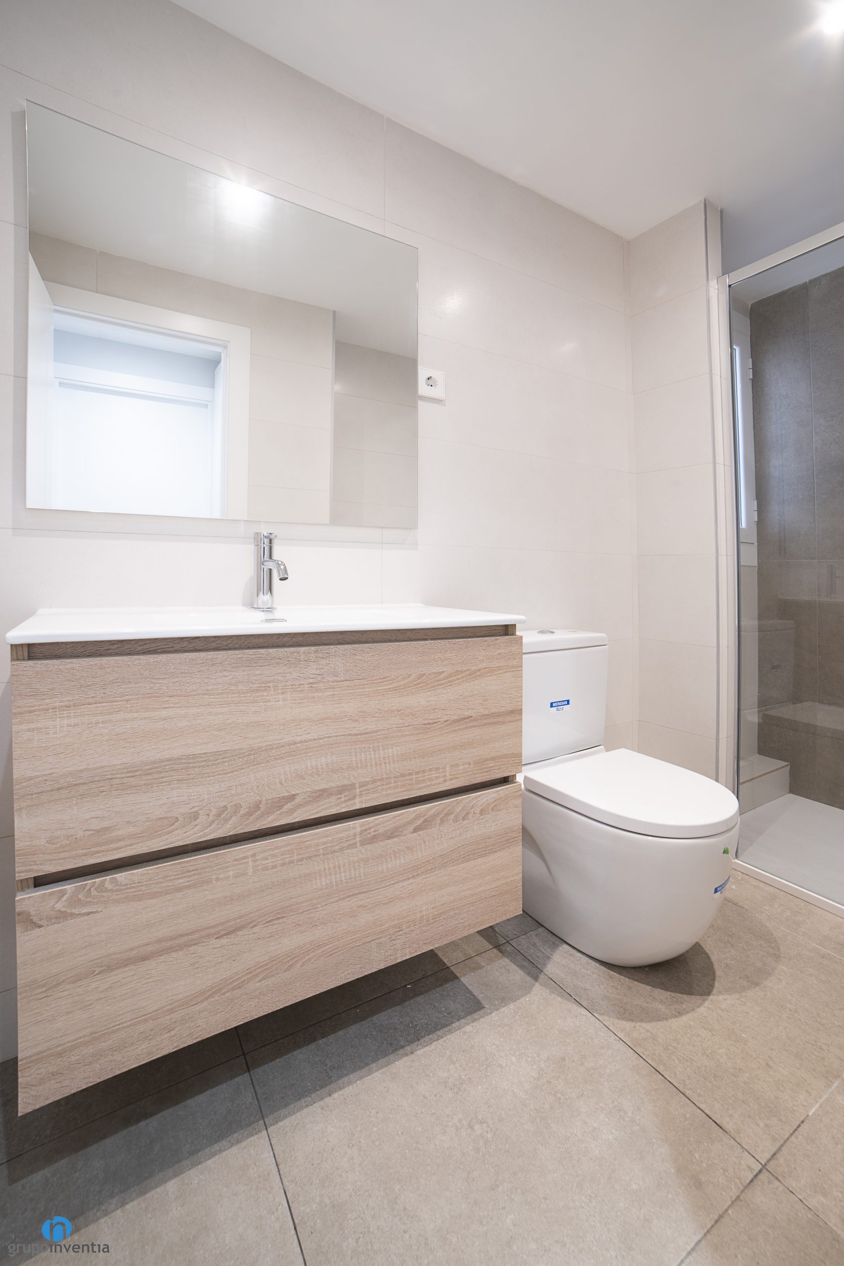 Per a la nova imatge d’aquesta reforma de bany també s’ha fet servir un disseny interior amb tons neutres que generen un ambient acollidor. Les parets s’han enrajolat completament amb rajoles beige de to clar. Per la seva banda el nou terra de bany és el mateix que s’ha col·locat als altres espais. Unes rajoles grans de to marró que asseguren resistència i durabilitat.
