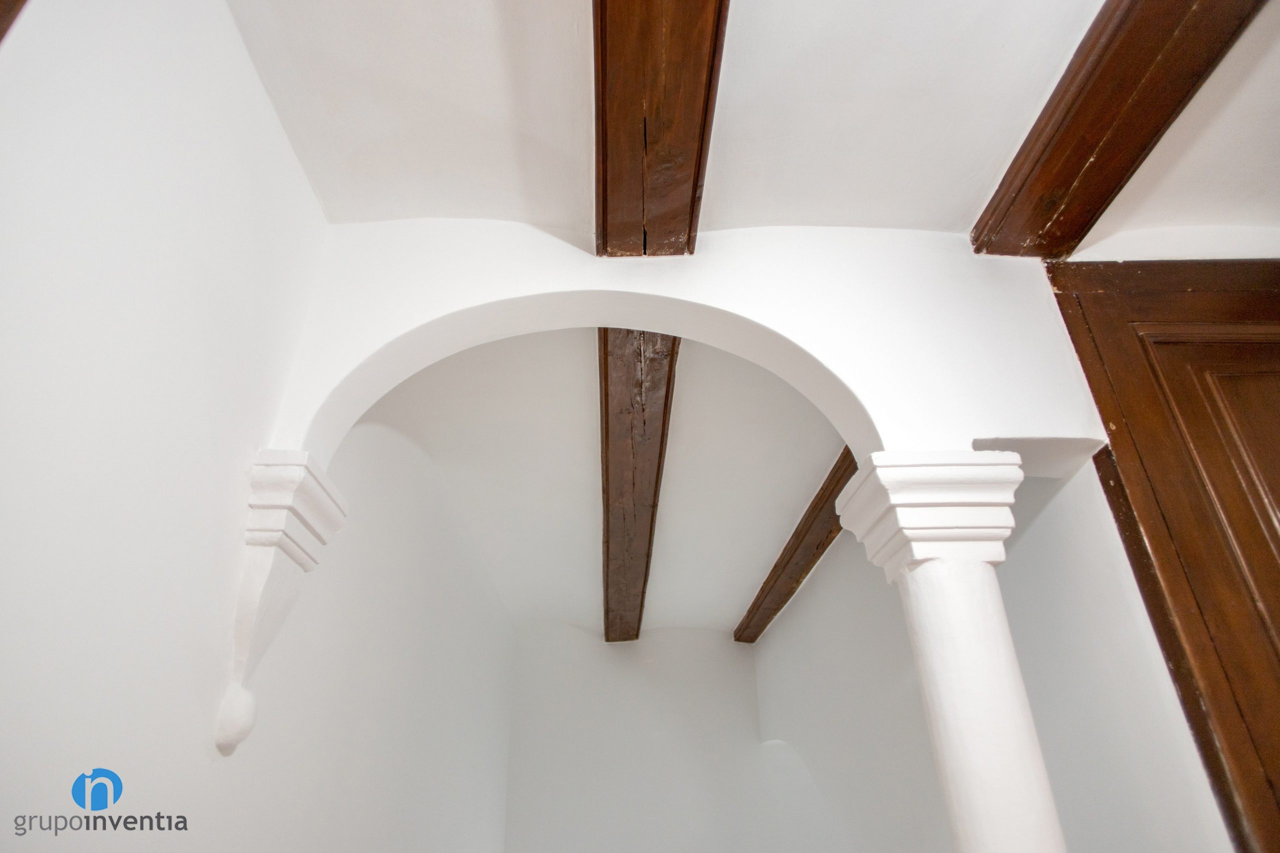 A les escales la fusta cobreix els cants de cada esglaó. Al contrapeu s’han mantingut les rajoles i en els esglaons el terratzo original. A més de dur a terme renovacions de casa, també comptem amb experts restauradors. Diversos elements d’aquest projecte d’interiorisme (escales, bigues, columnes) són una bona prova d’això.