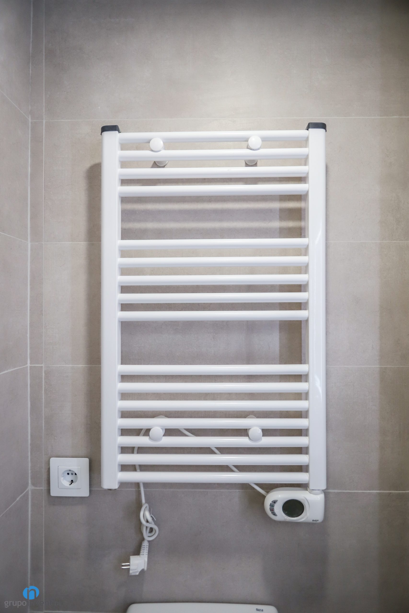 També s’ha dut a terme una notable millora en la imatge de les dues cambres de bany. S’ha seguit l’estil decoratiu aplicat als altres espais. S’han fet servir tonalitats neutres per generar espais lluminosos, amplis i acollidors. Per això les parets s’han enrajolat per complet amb rajoles de color gris. També s’han utilitzat rajoles amb diferents acabats en relleu a parets concretes.