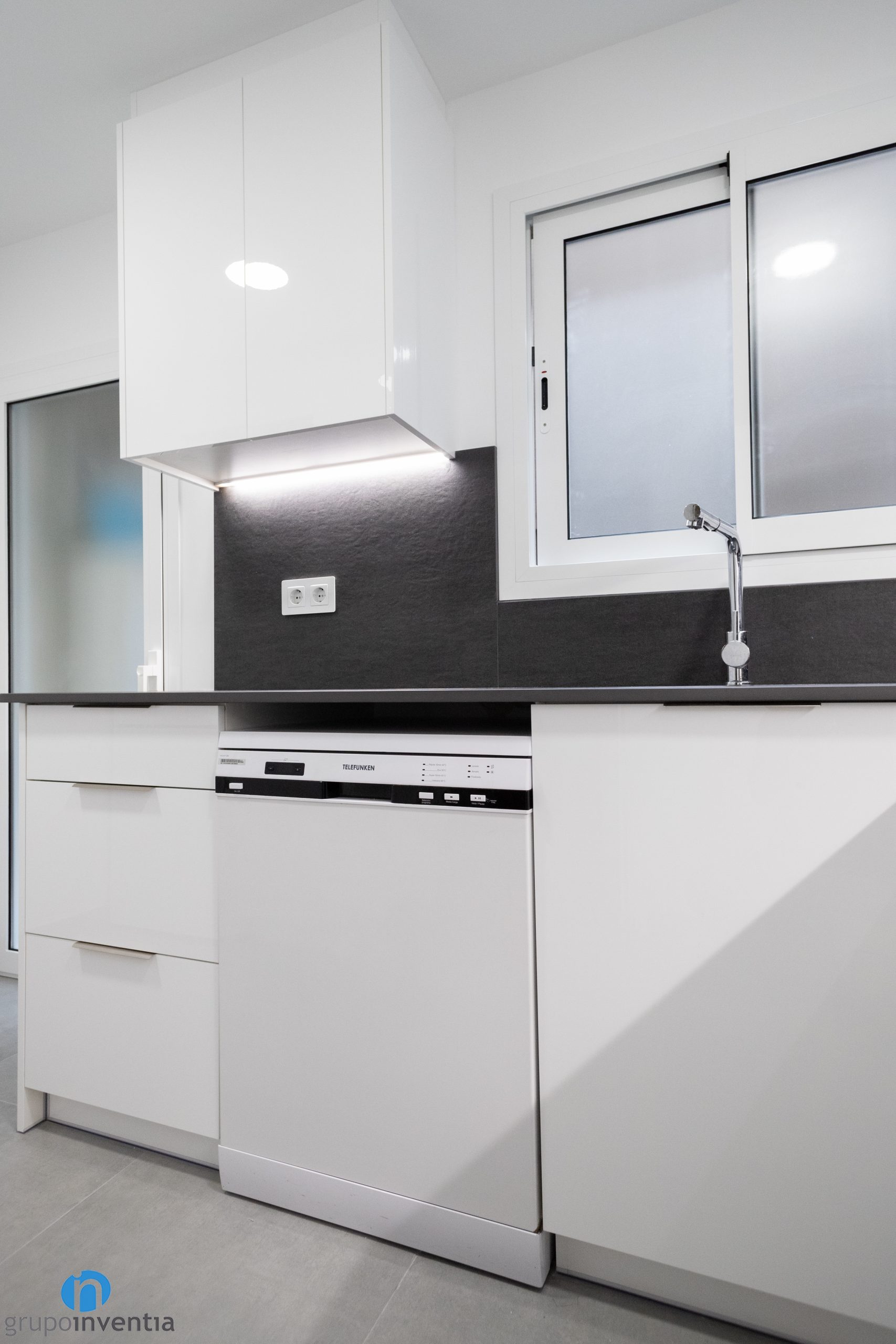 La resta de parets de la cuina s’han pintat de color blanc i potencien encara més l’amplitud visual a la cuina. També permeten que la llum flueixi amb facilitat fins a cada racó. Un altre detall nou d’aquesta reforma de cuina el veiem en la il·luminació dels taulells, col·locat sota els armaris de cuina.