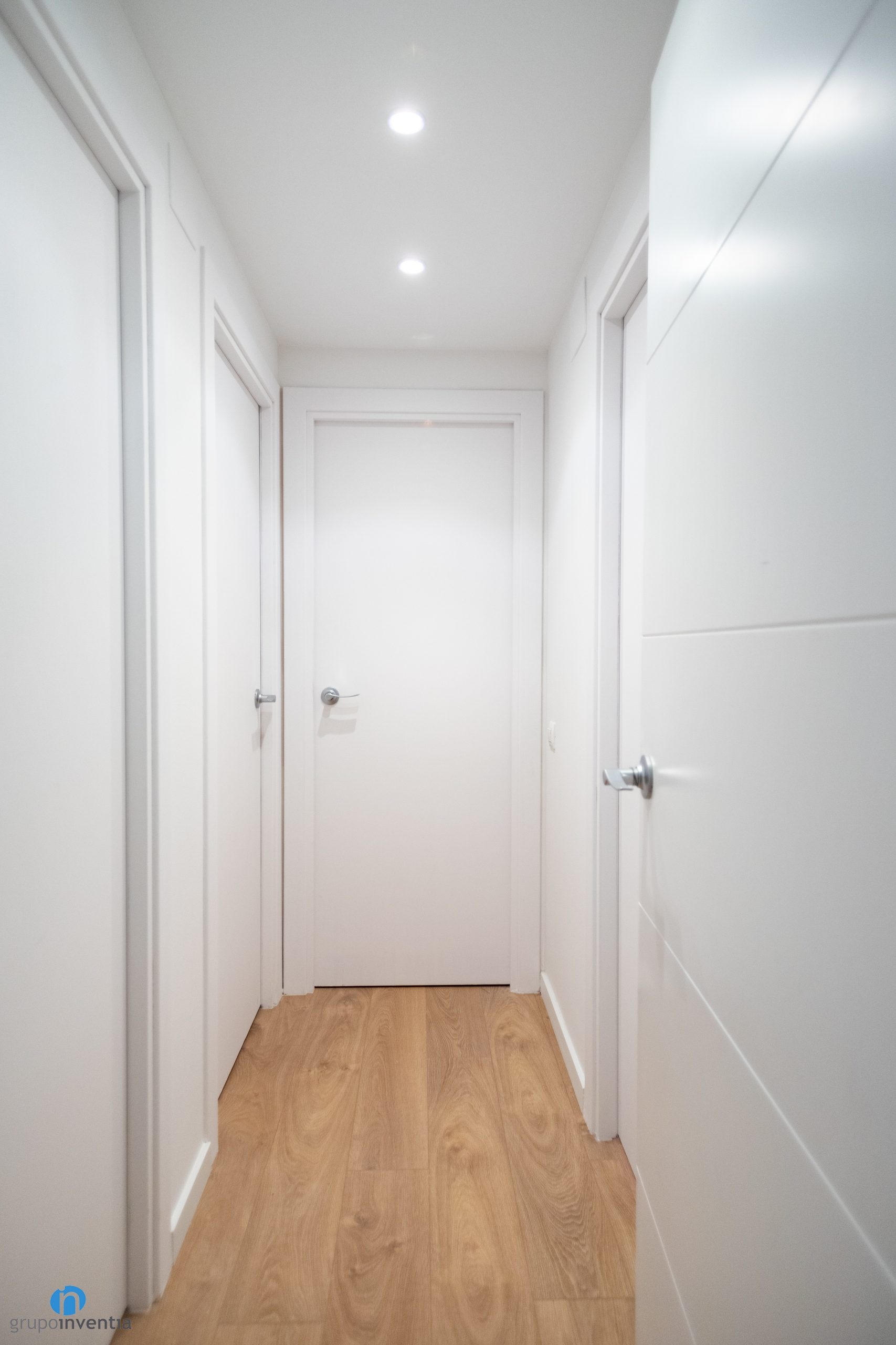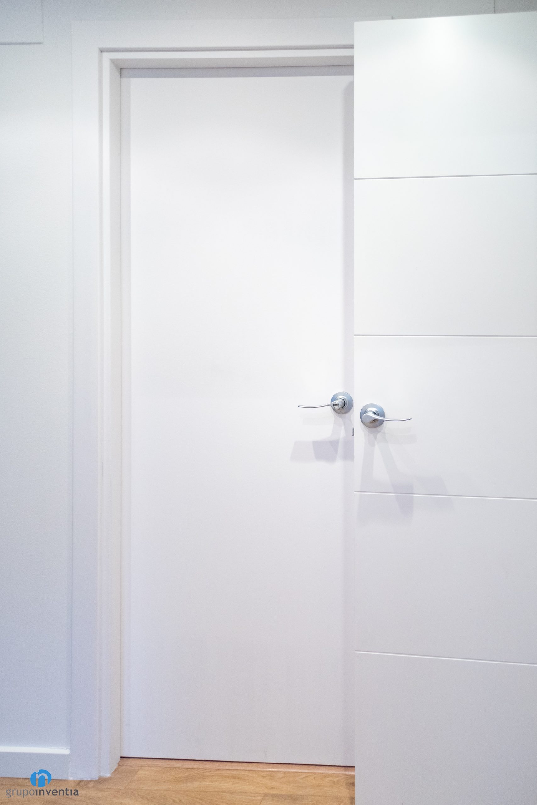 Les parets s’han pintat de color blanc i han generat espais molt lluminosos i visualment amplis. S’han aprofitat al màxim les entrades de llum natural de què disposa l’habitatge. Les noves portes que s’han col·locat també es presenten de color blanc. Aporten una imatge moderna a la vivenda en general i combinen perfectament amb el color nou de les parets. Els sòcols i els marcs de les portes també són de color blanc, ajudant a contrastar de manera efectiva amb el nou paviment.