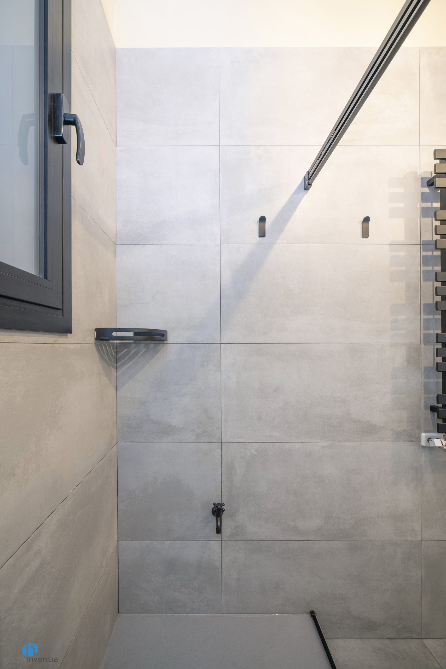 Altres punt important en aquesta reforma de bany a El Prat de Llobregat és el nou disseny interior que s’ha aplicat en l’estança. Gràcies a això la imatge s’ha renovat completament utilitzant elements moderns i també restaurant alguns originals. La paret de la part dreta s’ha enrajolat amb rajoles de color gris, les mateixes que s’han utilitzat per al paviment.